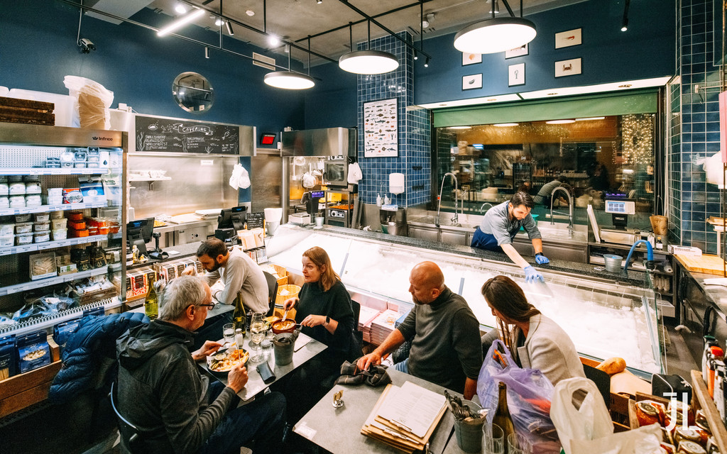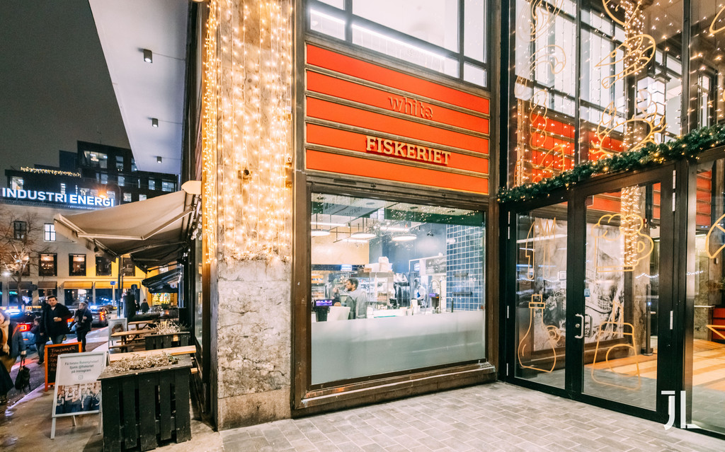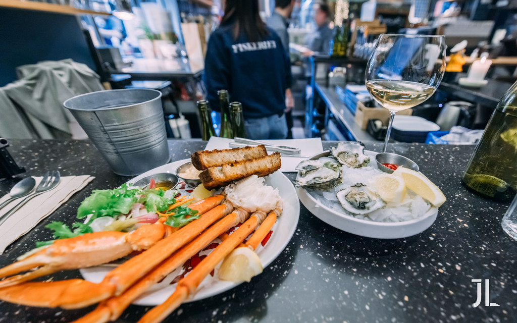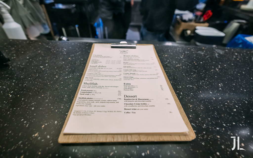 踏着夜色从图书馆出来,已是饥肠辘辘,打开地图在附近随机寻找一家本地高分餐厅竟获得了意外的惊喜。Fiskeriet Youngstorget,一家从外面看上去既有餐桌又有海鲜售卖的餐厅,这看似奇怪的组合一定有着最新鲜的美味。拉门入座,很幸运因是一人前来,直接坐在了吧台边上,不仅免去了等位的烦恼,还多了一个与厨师和服务员们直接沟通的机会。
