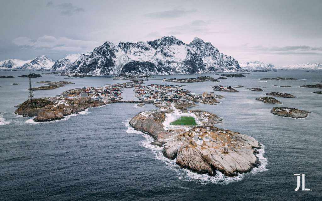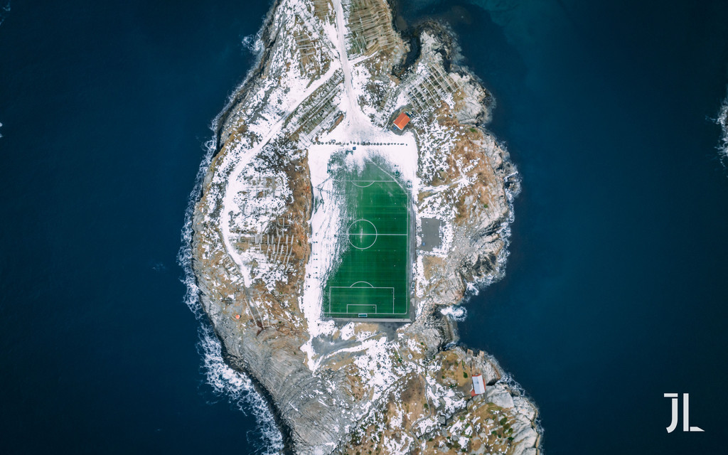 绿色的人工草皮被岩石包围,海就在十几米之外咆哮,难以想象在这里踢球的样子,会不会有球员因为担心球落入大海而不敢全力出击。不过在某种意义上,它又像极了我们当下的精神状态,孤立、边缘、但仍试图运转。它保留了人类对秩序与运动的追求,但又超脱于普通的追求,于这大海环绕,眺望北极之处,达到了某种理想且让人憧憬的状态。
