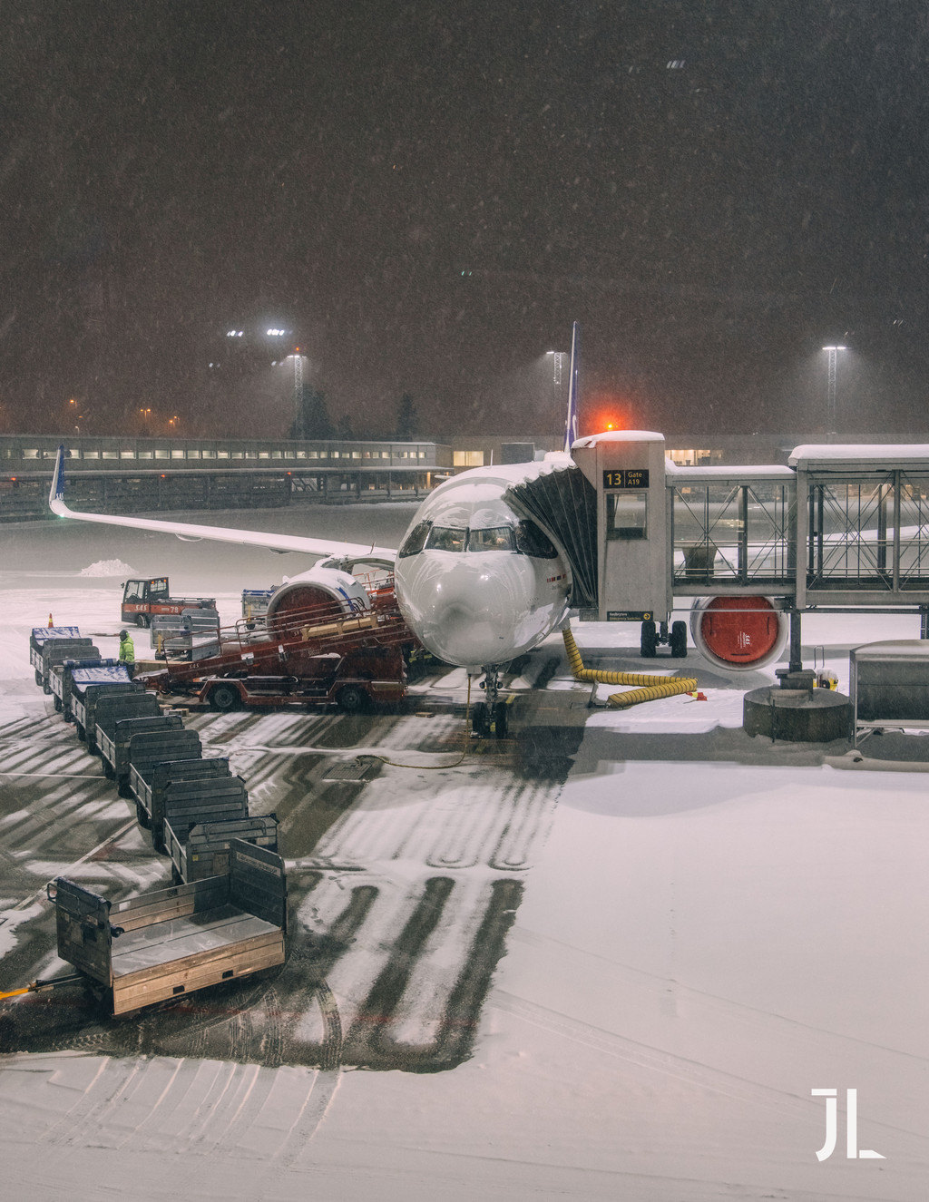 从阿姆斯特丹飞往奥斯陆的航班,在北海上空微微颠簸。云层的颜色从低压的灰转为泛白的冰冷,飞机仿佛穿越了一层看不见的气候分界线,稳稳降落在了挪威奥斯陆机场。飞往罗弗敦的飞机于第二天一早出发,于是决定在奥斯陆机场边上的酒店浅浅度过一晚。虽然只飞了两个小时,但已经能感受到这里气候与荷兰明显的不同,风变得更加锋利,大雪所形成的雪堆也几乎遍布目之所及,甚至能看到被用作铲雪车的拖拉机,好期待第二天抵达罗佛顿会有怎样清冷的景色。