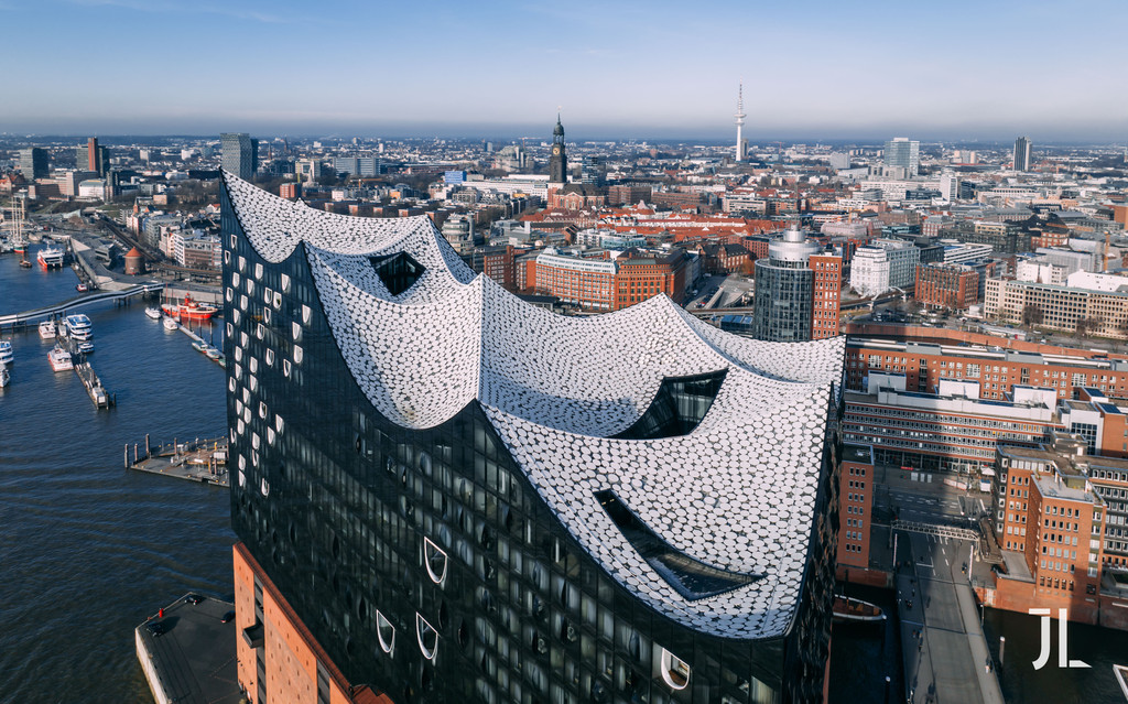 易北爱乐音乐厅就在仓库城不远,甚至在仓库城city walk的时候还能远远的看到,独特的建筑造型与周围的一切都形成了巨大的反差,但似乎又不失和谐,有种意外的美。