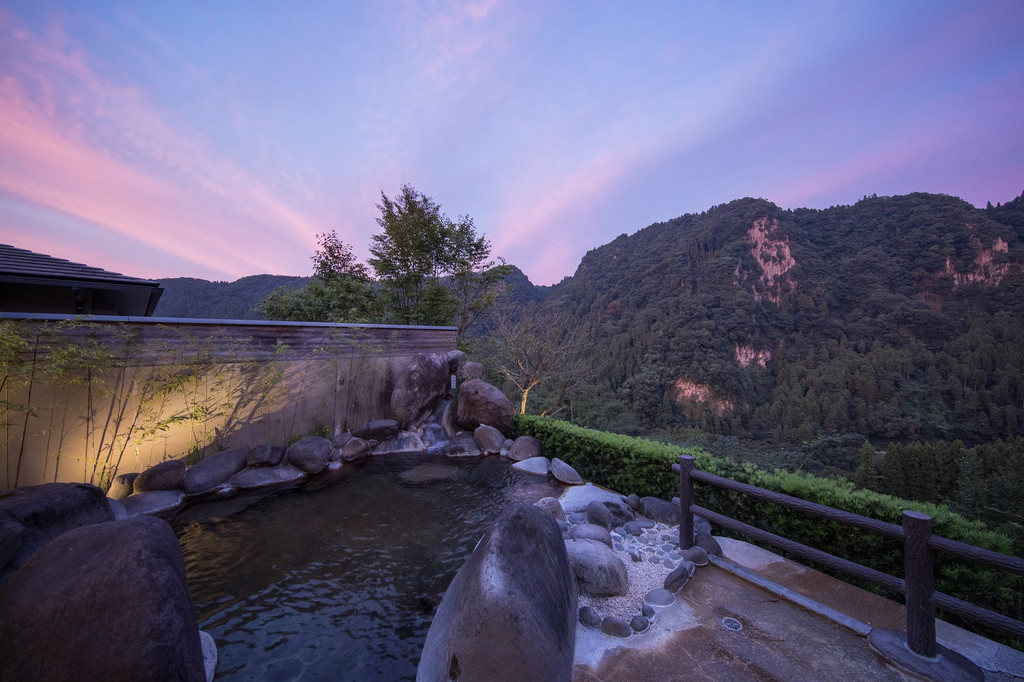 可以在旅馆里的大型温泉浴池里放松身心,这里设有宽敞的室内浴池,包括可以欣赏响溪谷全景的露天浴池。