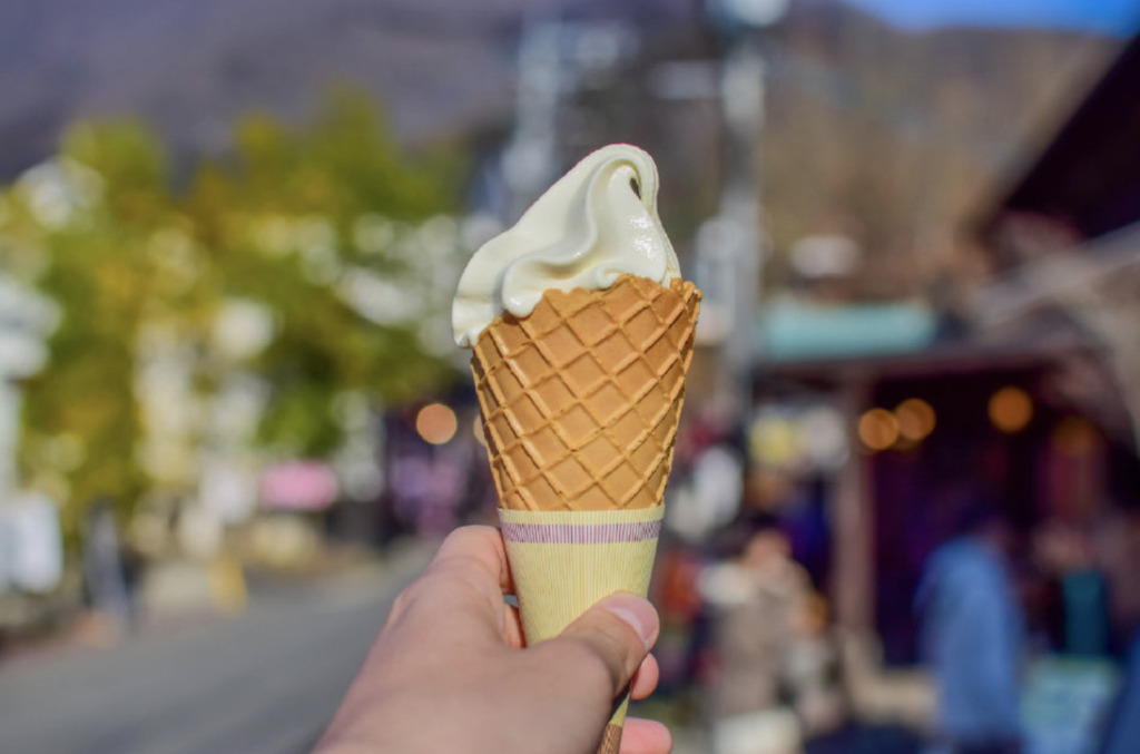 在阳光明媚的冬日晴天,泡完热腾腾的温泉,来尝一下当地特色的冰淇淋吧。