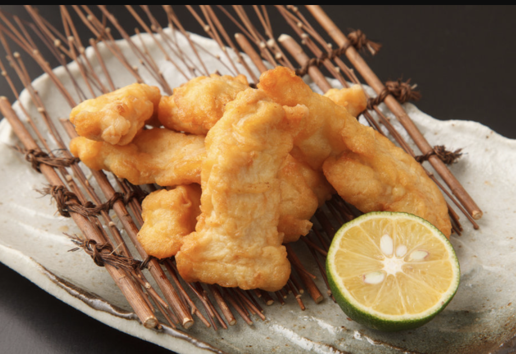 对于大分本地人来说,日常生活中鸡肉必不可少,“鸡天”可以说是精髓,它吸引着无数人的味蕾。“鸡天”的烹饪方法是将鸡胸肉和大腿肉切成薄片,将酱油、大蒜和生姜混合后进行腌制,然后将面粉和水制成的面团包裹在外面,放入锅里油炸。最后,蘸上当地特产的橙醋酱(将柑橘汁加入酱油中制成的调味料)进行食用。