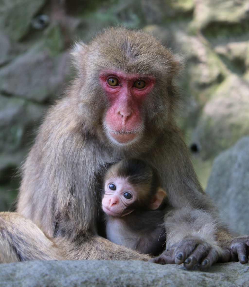 在大分市西端有一座海拔628m的高崎山,这里生活着众多野生的日本猕猴。