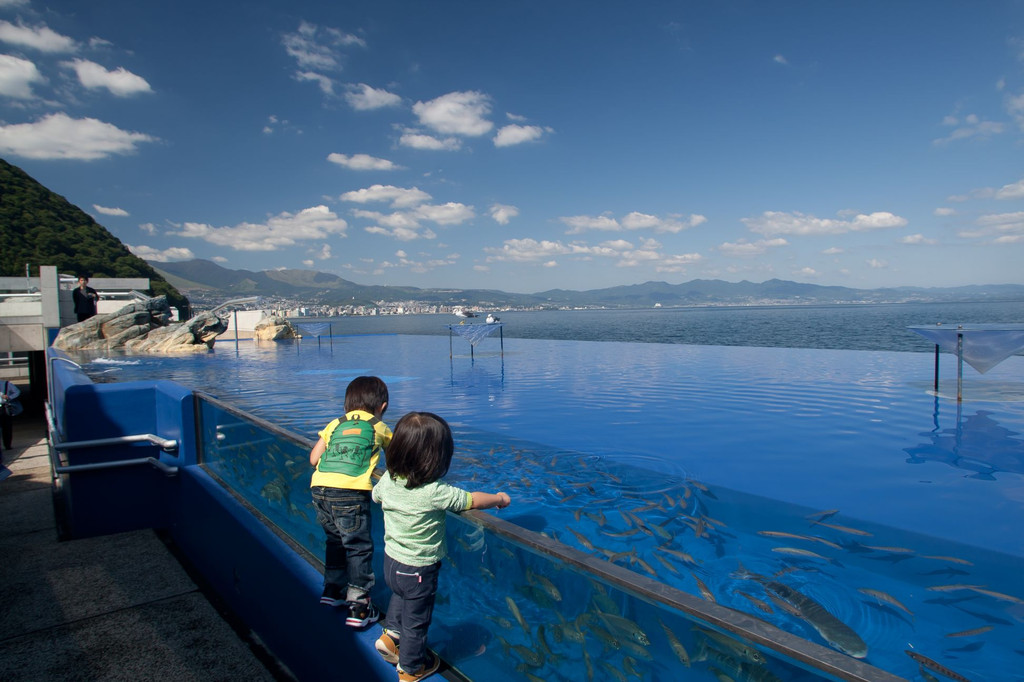 大分海洋宫水族馆“海卵馆”位于大分市和别府市之间。这座地标性的现代建筑仿佛与别府湾的景色融为一体。