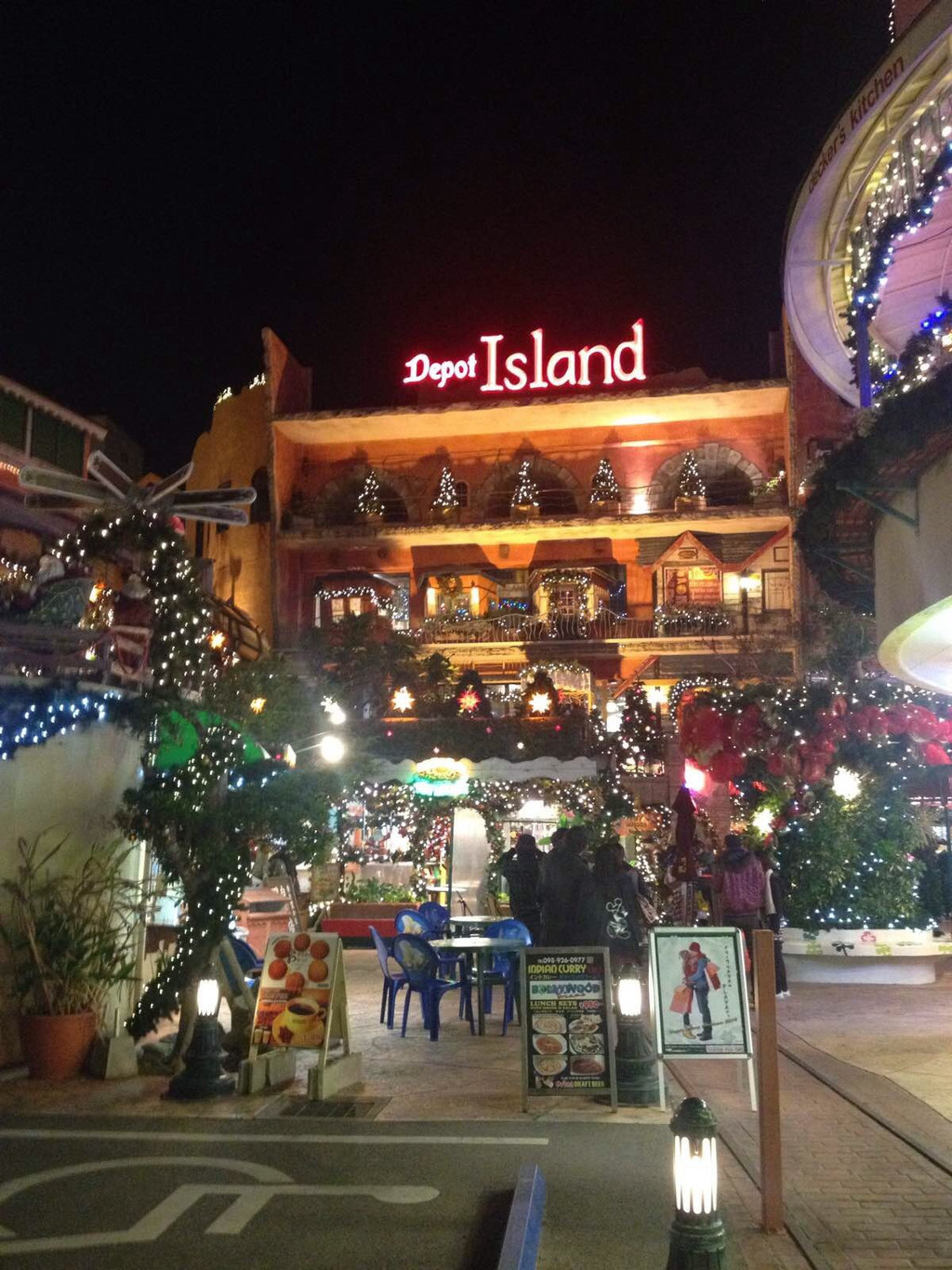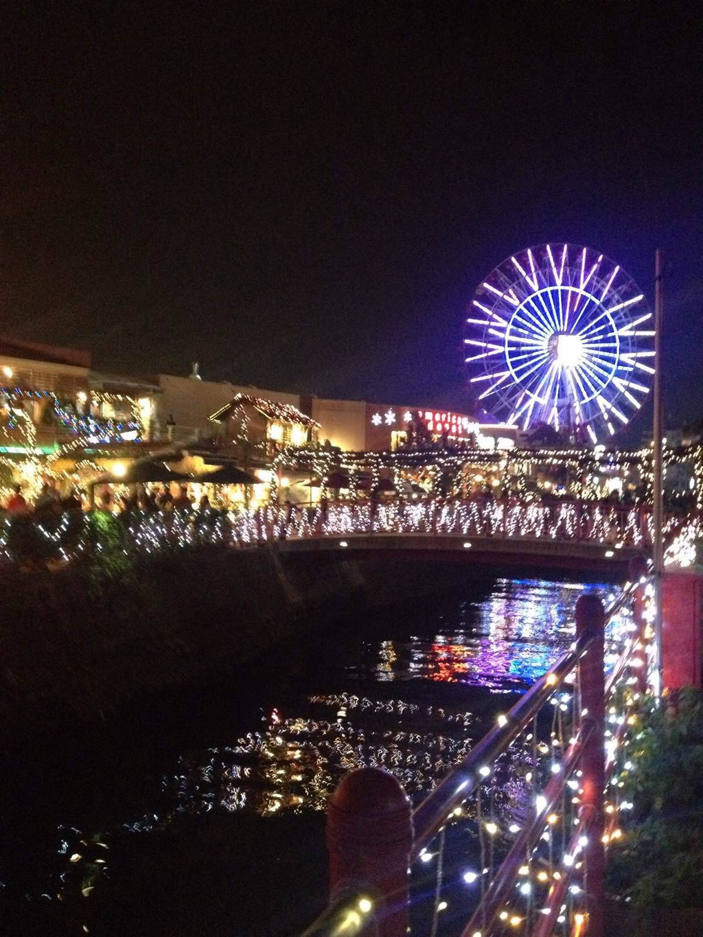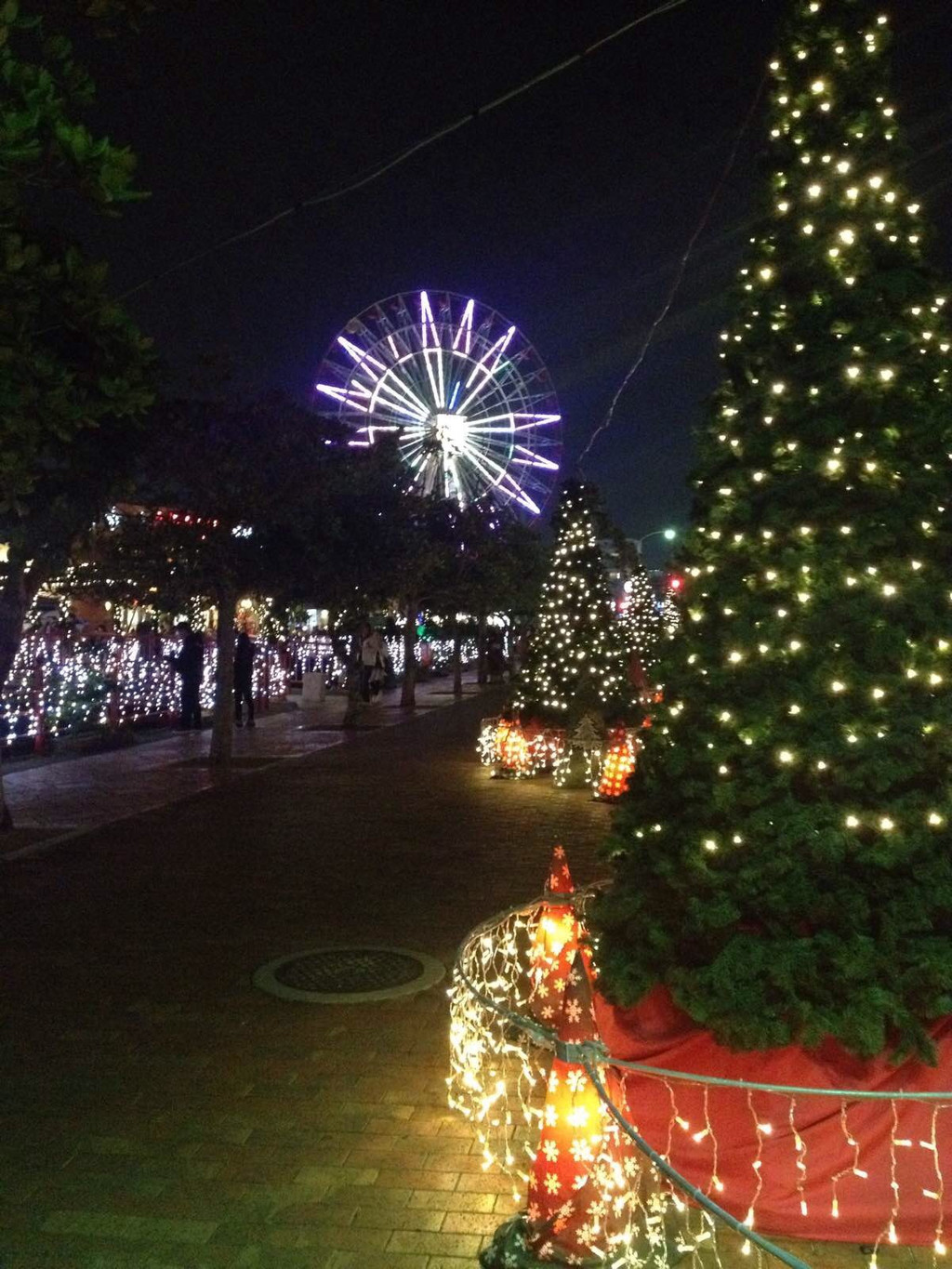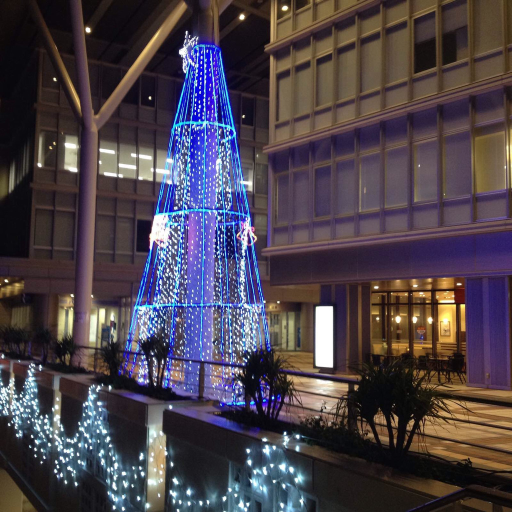 单轨列车在旭桥站下来就是我们预定的希尔顿酒店了。今夜,圣诞气氛已经浓了。