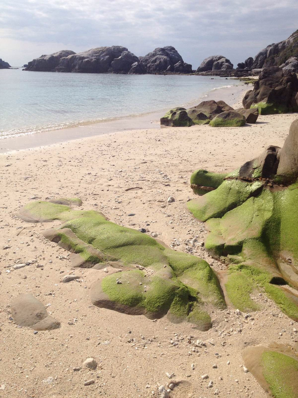 阿波连海滩,长满青苔的石头。