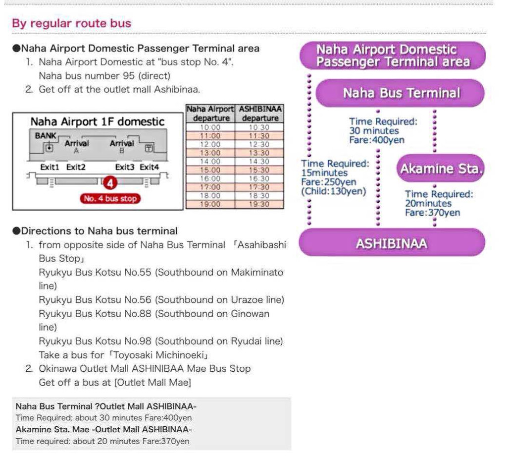 通过网络攻略的海量阅读得知,冲绳的公共交通不是很方便。冲绳是个小地方,但是很狭长,而且海域面积大,看得到但过不去的地方很多。比如我们住的旭桥希尔顿楼下的巴士总站就有120路去美国村海洋公园,但是单程就要开两个小时。有的还不到门口,要走一段路或者换车。单轨列车只在那霸市内,出了那霸就没有了。而美国村琉球村海洋博公园都是在中部或北部的。