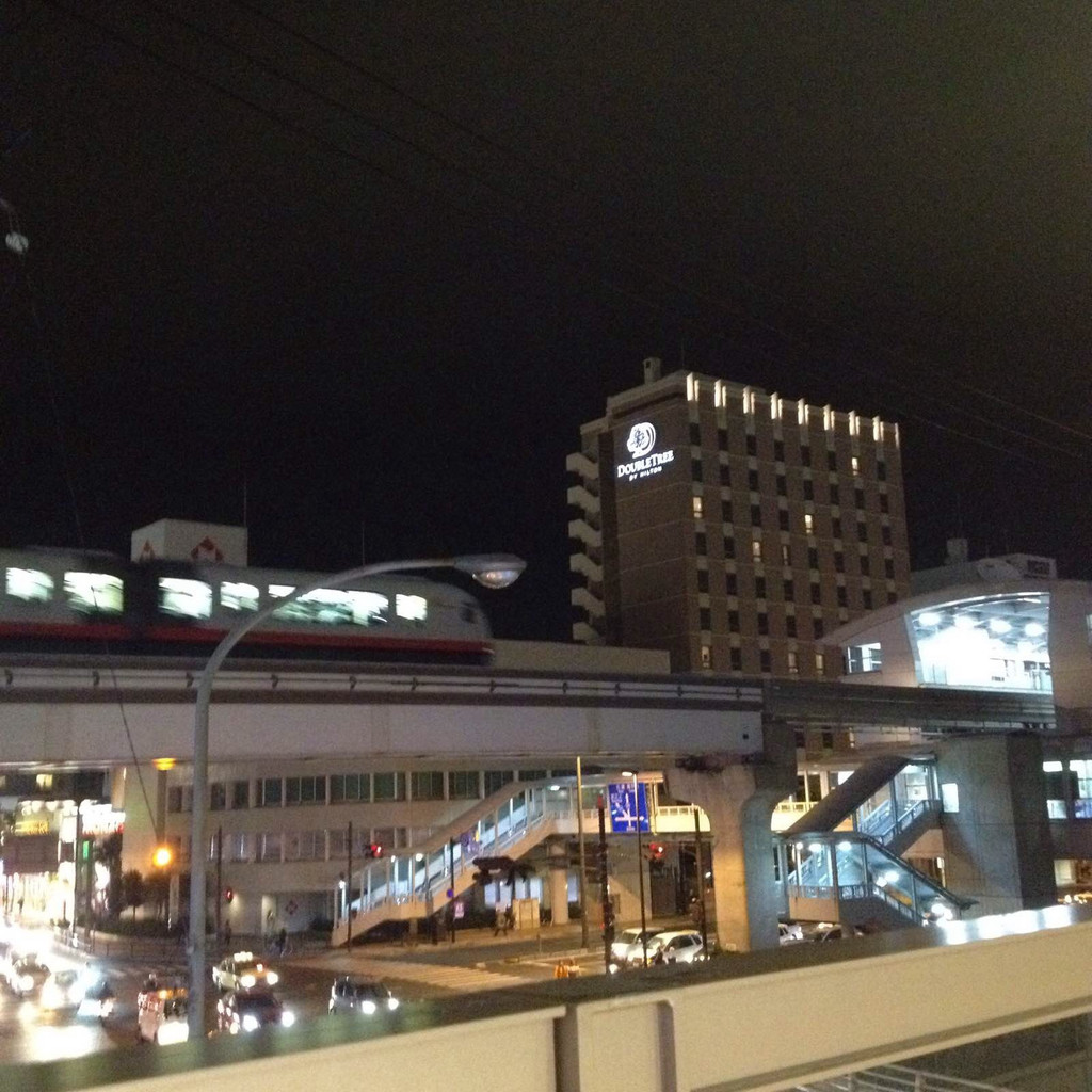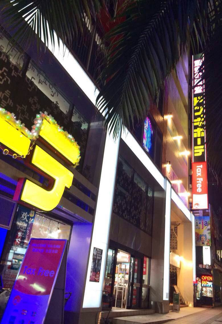 飞机在上海晚点近两个小时起飞,但实际落地只晚了20分钟。不过初去乍到的我们因为晕头转向,等到酒店入住,再搭乘单轨到国际通已经很晚了。饥不择食的我们一路买东西一路找吃的,大街上迎门开着的,就多是居酒屋了。