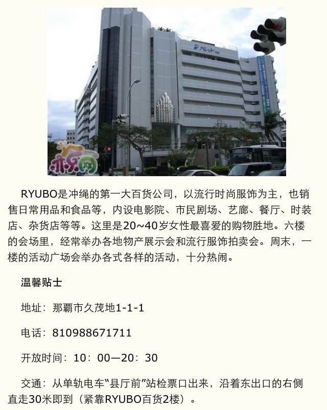 RYUBO,就在国际通的入口处对面。我想去的MUJI在8楼。MUJI的粉丝们要注意了,此地不像北海道,好像只有一个无印良品,可能是我们语言不通,反正美国村再也找不到了。