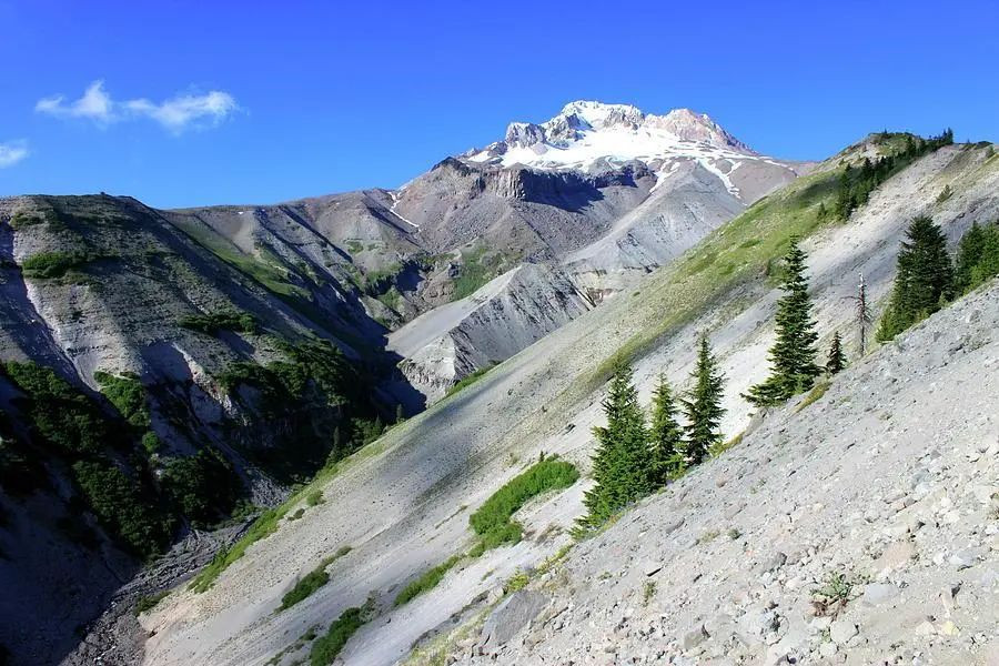 继续徒步2.2英里后,Zigzag Canyon富有盛名的锯齿谷景就能尽收眼底,胡德山侧翼的火山灰地表被Zigzag冰川河凿出了一条深达700英尺的大峡谷,壮观无比。