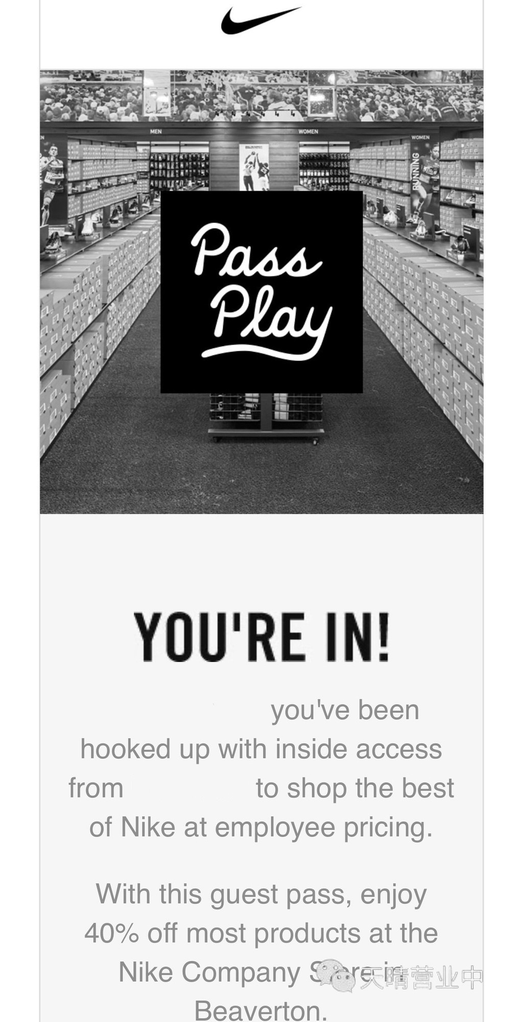 4)Nike 员工亲友(在世界总部上班的,或者其他总部或办公室较为重量主管级的员工,而非任何Nike 柜位员工)