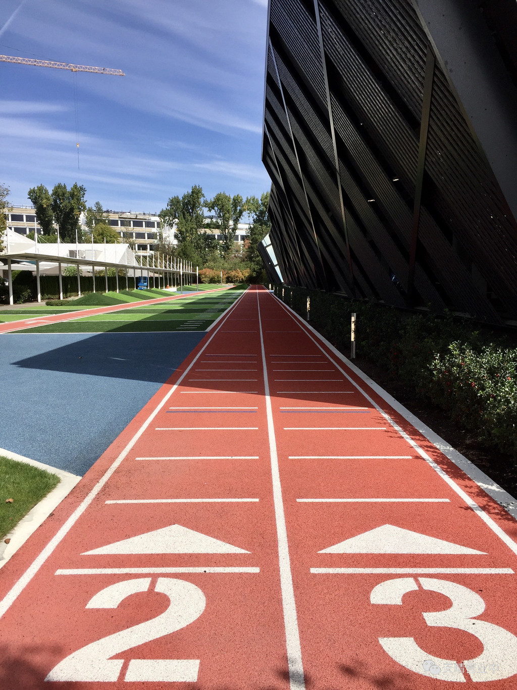 作为运动品牌,除了室内体育中心、游泳池、排球场、篮球场,当然还有跑道。除了员工可在此运动外,也作为研发团队测试产品的场地。
