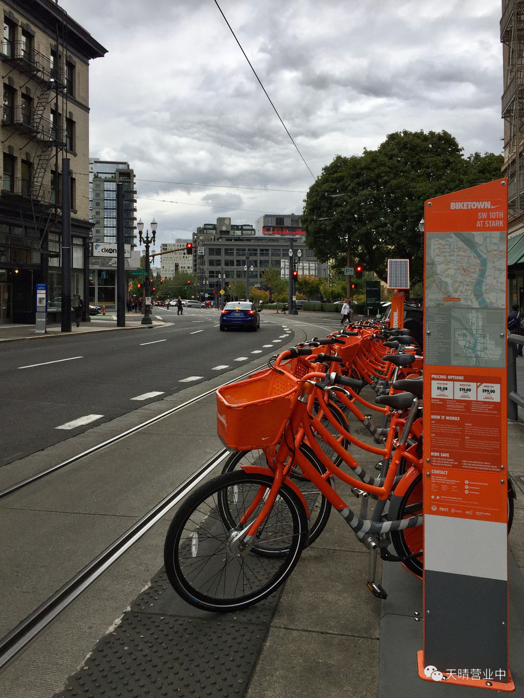 身为 Nike 大地盘以及奥勒冈州人口最多的城市,来这里的旅客很快可以发现处处是 Nike 与波特兰市政府共同合作推动的 BIKETOWN 公共自行车。用力推广公共运输与自行车通勤文化,波特兰曾多年获选全美骑自行车最友善的城市。目前 BIKETOWN 共提供 1,000 辆自行车以及 125 个租借站,而自行车本身的设计可以说是 Nike 的置入性行销了。车身采用经典 Nike 橘,也就是当年第一个鞋盒的颜色,也是现今 Nike 的企业色。