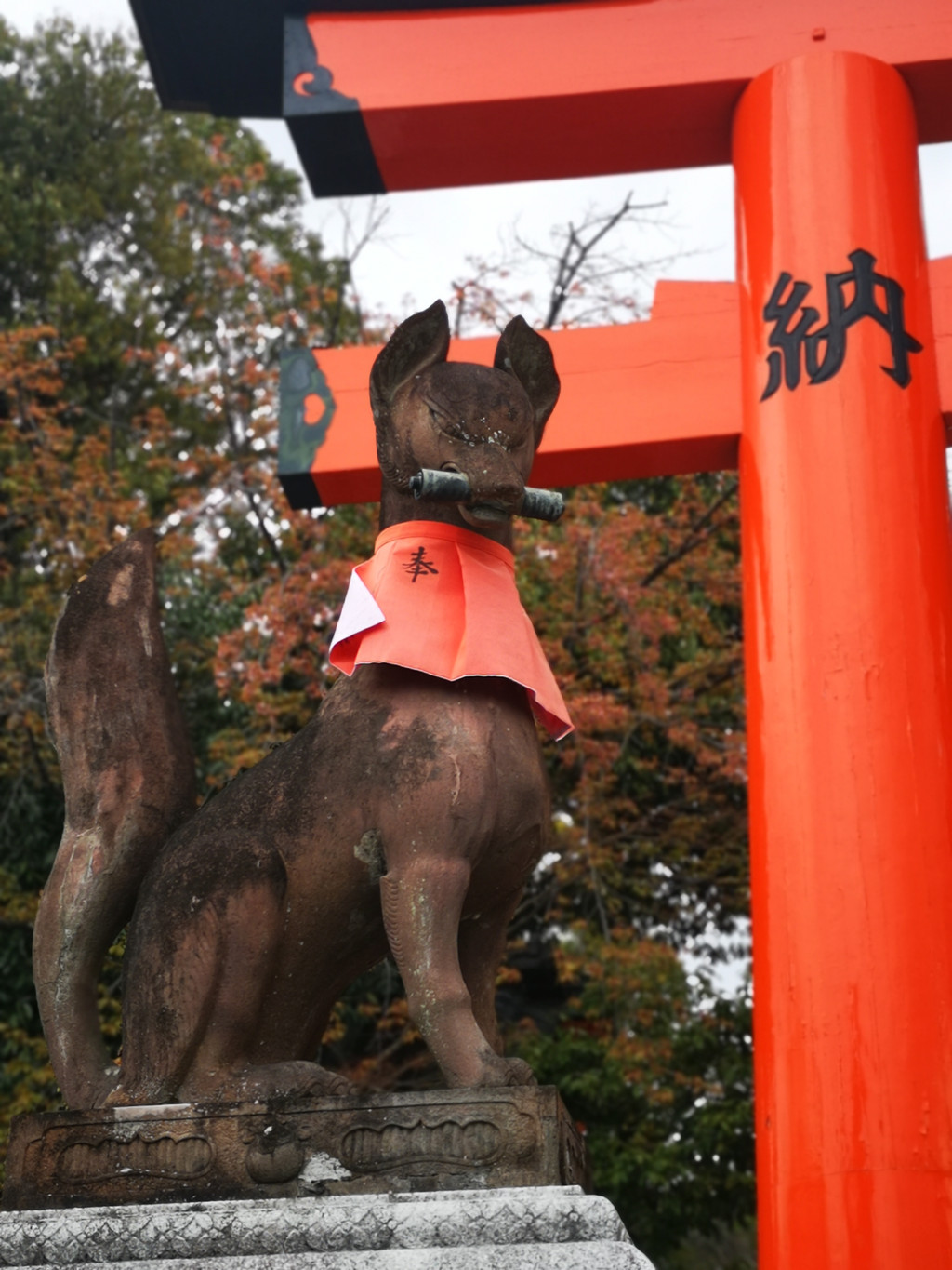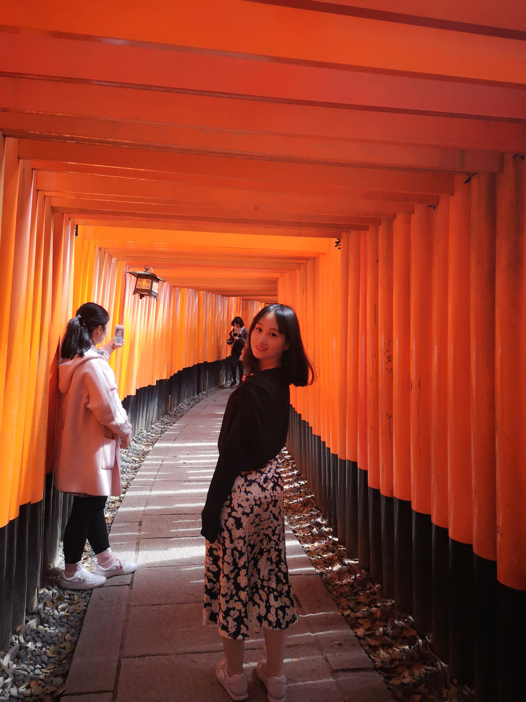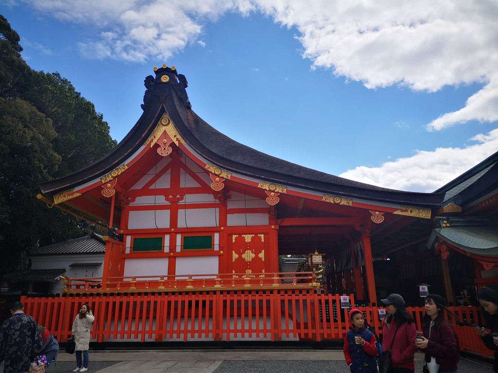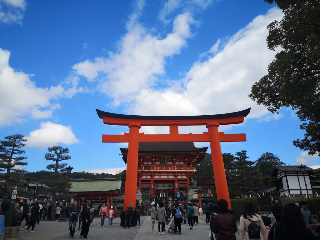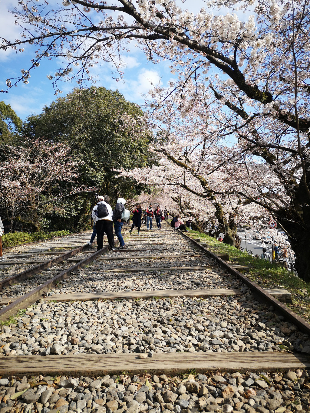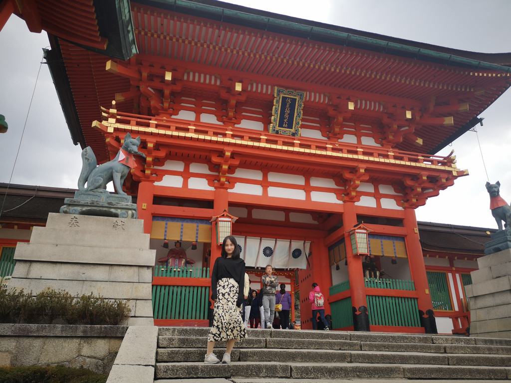 难波地区去京都要在新大阪站换乘JR,不过日本的换乘也还算方便,JR分新快速、快速、普通三种车次,分别需要30min,45min,60min,三种车次价格都是一样的540日元/人,就是中间停靠站点不同,最快的中间只停一站。到达酒店后被告知要下午三点后才能办理入住,我们索性寄存了行李直接出去玩。京都第一站伏见稻荷大社,著名景点就是人多,特别又碰上樱花季,跟国内的国庆过年长假有得一拼,人从众,刚到景点时飘了一点雨,后来就放晴了。伏见稻荷供奉的是日本所谓的稻荷神,是农业与商业的神明,香客前来祭拜农作丰收、生意兴隆,是京都地区香火最神社之一。千本鸟居和随处可见的狐狸石像就是这个神社的标志,我们走进千本鸟居时刚好出了太阳,阳光透过褪色的暗红柱子照射进来,光和影的交错显得格外壮观迷人,是个出大片的地方,可惜摄影技术有限,镜头下的景不如实景美。随后挑了个相对冷门的赏樱景点蹴上,结果发现凡是跟樱花有染的景点,都逃不过人多的命运。蹴上旧铁道顾名思义就是旧铁道两旁种满樱花树,如果人少也是拍照很美的景点,特别是在花满开的状态下,我们去的时候大约开了六七成吧,刚出地铁站第一眼看到马路对面一排的樱花树还是被震撼到。交通就是地铁坐到蹴上站就是了。