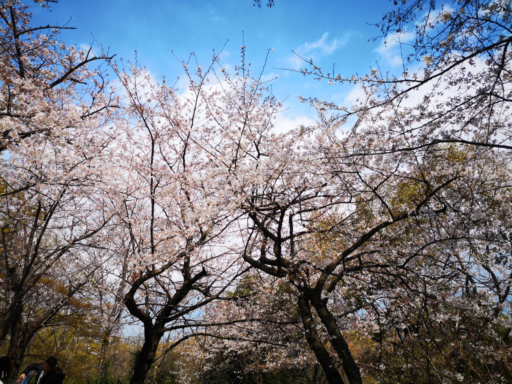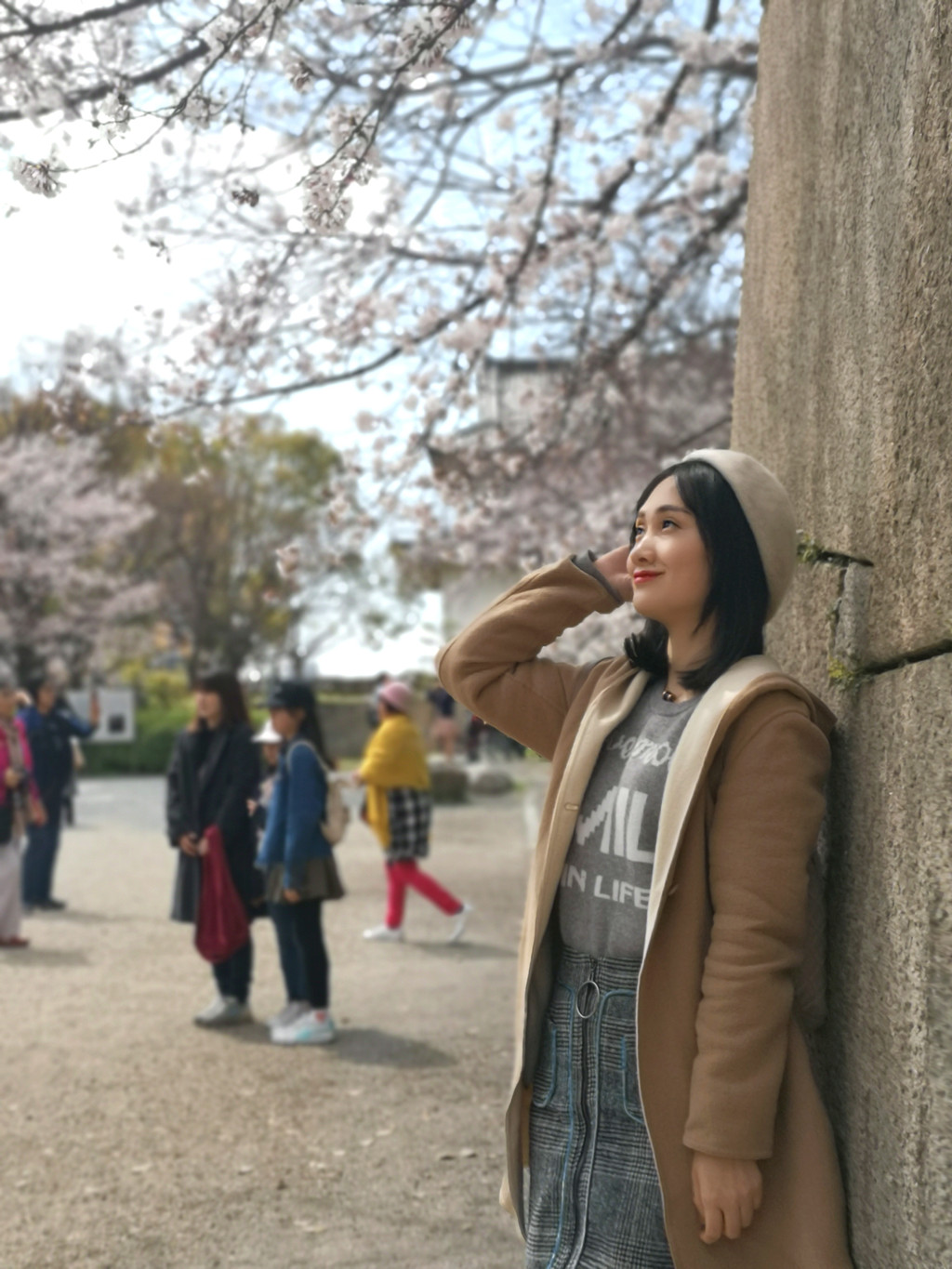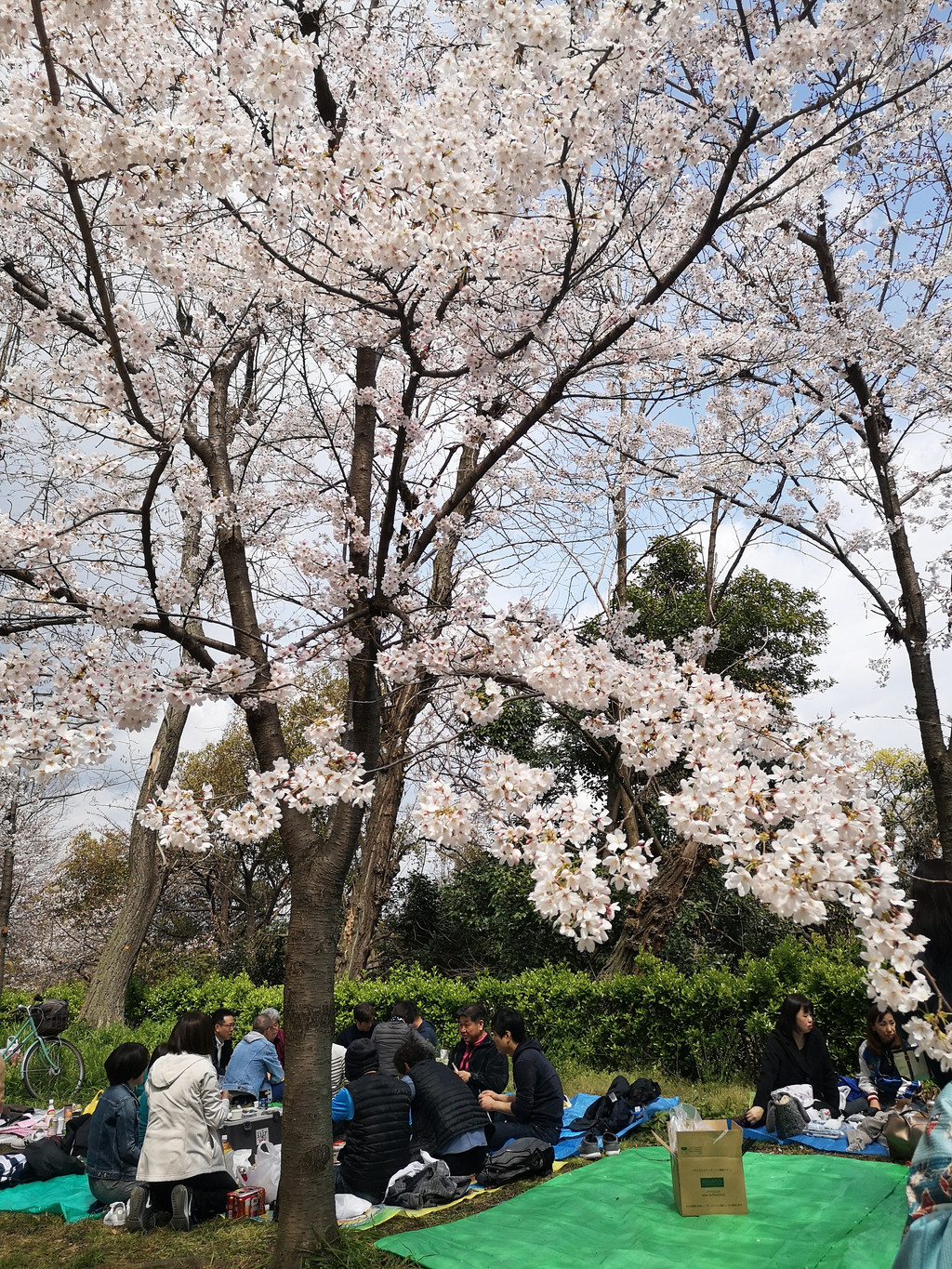 樱花季的大阪城公园真得很美,因为天气的原因今年的樱花开得特别晚,加上我们去的这几天又碰上冷空气,樱花就开了五成左右,但也已经很美了,可以想象得出在满开的状态下该是怎样一种醉人景致。因为刚好碰上周末,赏樱的当地人也很多,发现日本人特别喜欢在樱花树下铺上小垫子野餐,带上各种好吃的食物,甚至有的还带了乐器,边赏花边弹奏特别有氛围,看得人忍不住想加入其中。