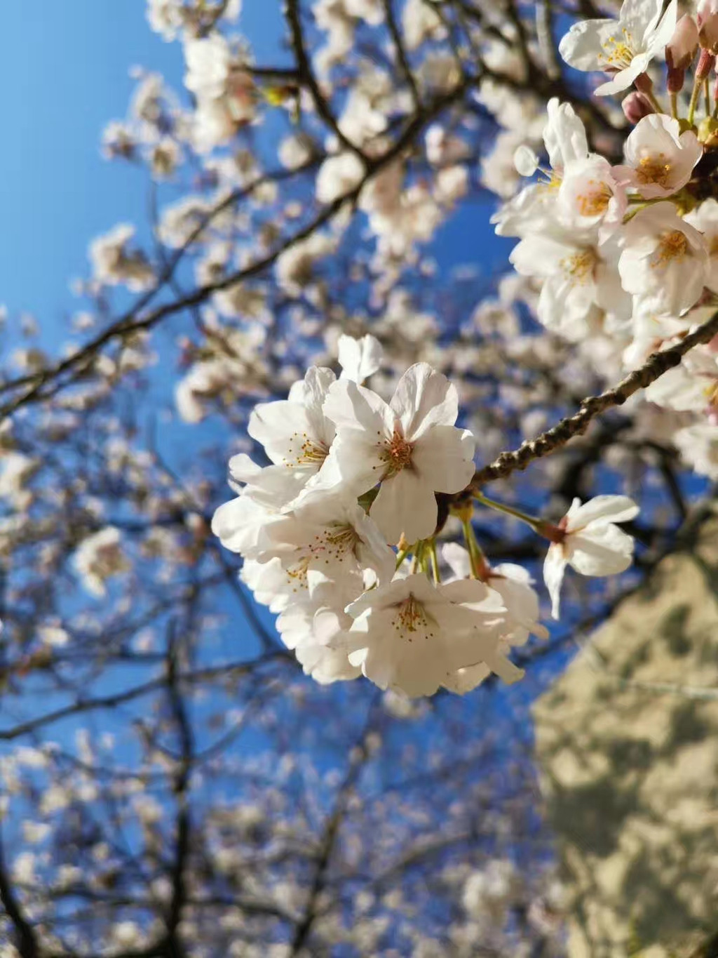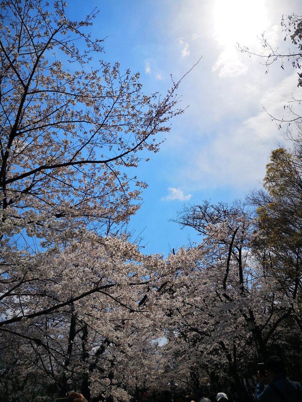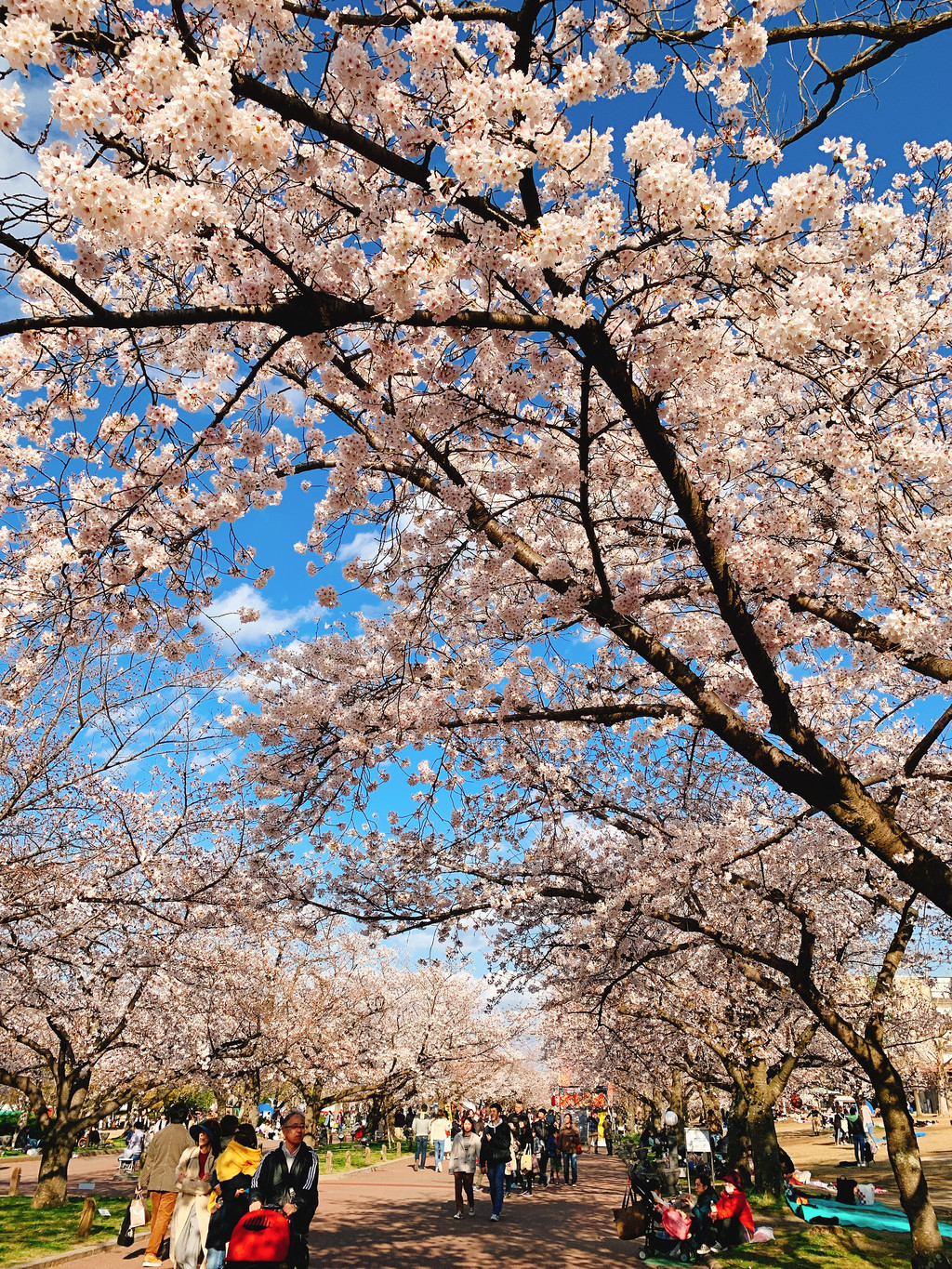 樱花季的大阪城公园真得很美,因为天气的原因今年的樱花开得特别晚,加上我们去的这几天又碰上冷空气,樱花就开了五成左右,但也已经很美了,可以想象得出在满开的状态下该是怎样一种醉人景致。因为刚好碰上周末,赏樱的当地人也很多,发现日本人特别喜欢在樱花树下铺上小垫子野餐,带上各种好吃的食物,甚至有的还带了乐器,边赏花边弹奏特别有氛围,看得人忍不住想加入其中。