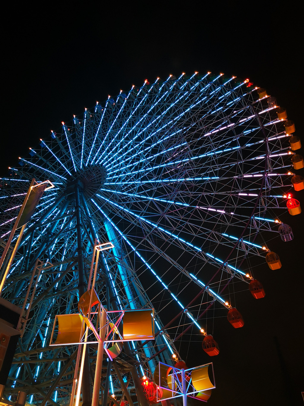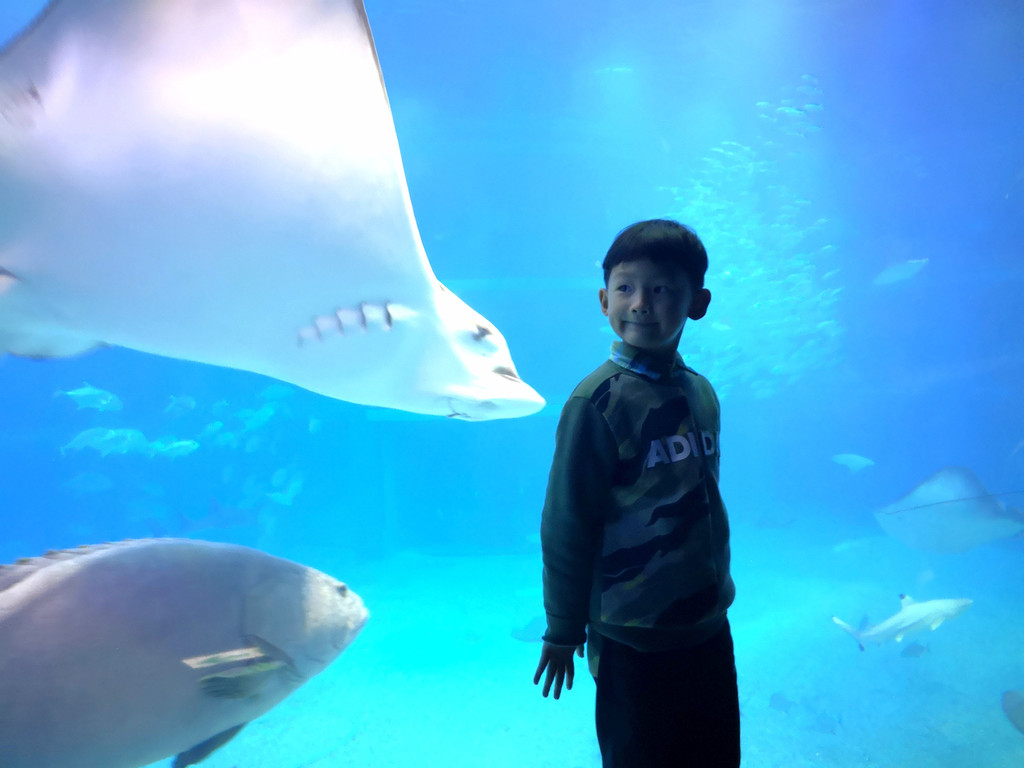 海游馆在天保山地区,天保山很适合亲子游,有海游馆,有乐高探索中心,玩好可以坐摩天轮看一看大阪城的夜景。海游馆门票大人2300日元/人,儿童600日元/人。大阪的海游馆据说是世界上最大级别的室内水族馆,这里以环太平洋火山带、生命带为主题,再现了环绕太平洋的不同地域的自然生态环境。和新加坡的海洋馆比较,个人还是更喜欢大阪的这个,趣味性更强一点,在2楼有个手摸池,可以近距离的抚摸海洋生物,光哥很开心的摸到了他喜欢的魔鬼鱼还有小鲨鱼。一直觉得海洋馆是一个很治愈的场所,会让现世浮躁的心平静下来,个人比较喜欢模仿太平洋海域的一个大圆柱形鱼缸,那深蓝的海看着就特别治愈。看完海游馆出来已经快六点了,来不及去乐高探索中心,就直接去坐了摩天轮。摩天轮好像是大人小孩同价,700日元/人,摩天轮有部分的座舱为全透明,不仅仅是四周全玻璃,就连地板也是玻璃的,但是要另外加钱。考虑到王先生有轻微恐高症,我们还是选择了普通舱。摩天轮转一圈约15分钟,华灯初上的大阪城和大阪港缓缓地呈现在眼前。来到不同的城市都喜欢登高看一看这个城市夜景,虽然每个城市的夜景都大同小异,但还是执意地想去感受不同的夜色。