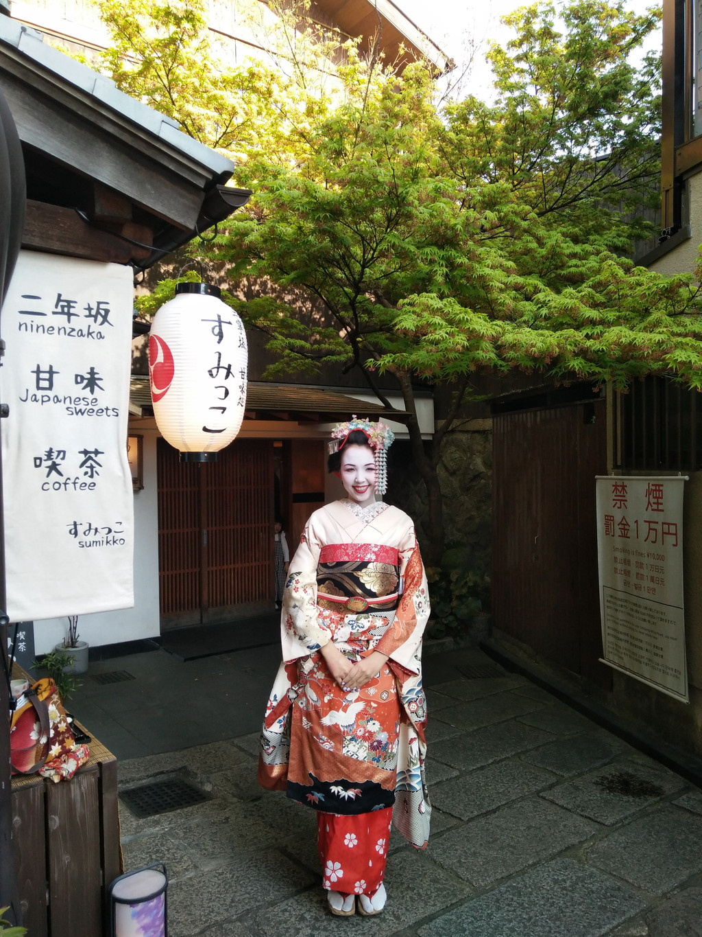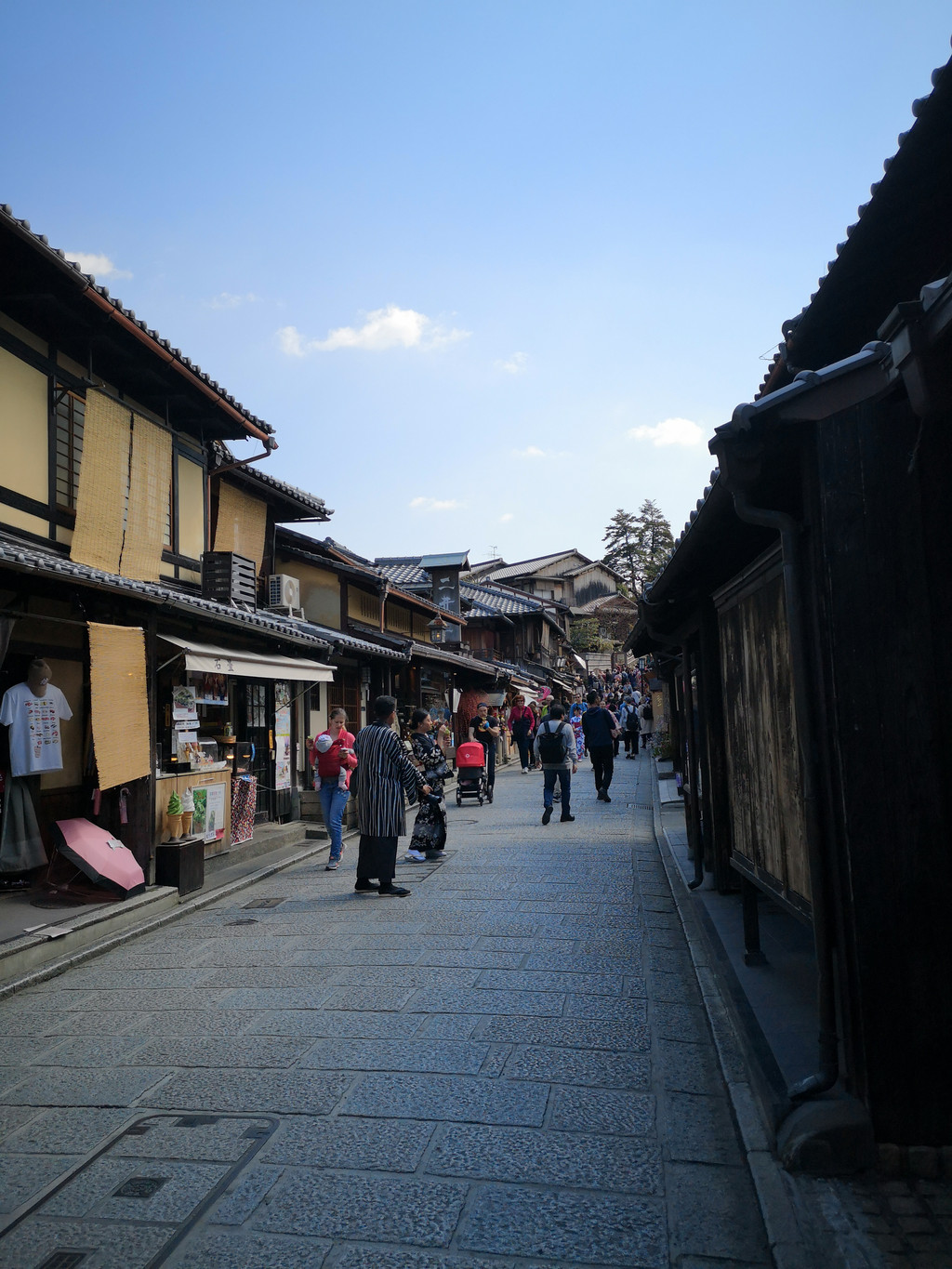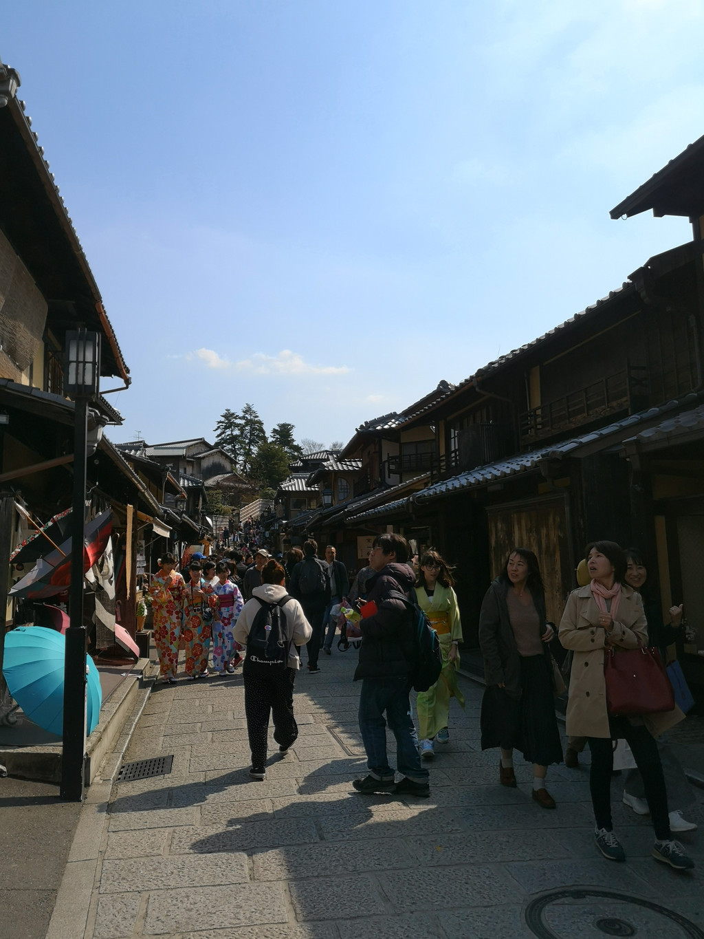 今日是公交出行的一天,来到不同城市乘坐当地公共交通也是好玩的体验。去清水寺可以在京都站公交站搭乘市营巴士206、100路,到清水坂下车。比起清水寺其实我更喜欢二年坂三年坂,是个适合慢慢逛、细细品的地方,有点小资,一路上有很多特色小店,人少的时候每家店进去转转,人多的时候也只能走马观花,但是日本的一年四季好像都没有人少的时候。穿和服的行人反倒成了这一带景区亮丽的风景线,真得超多人选择在这里和报换装,所以穿和服走在这里毫无违和感,反而没有入乡随俗穿和服的我们倒感觉有点格格不入了。路过居民区,都是些独门独户的二层小洋房,门上都会挂着主人的名字,门口种上点小花或者盆栽之类的,收拾的很干净,是我垂涎的住房环境。我们就这样一路上走走停停,赏花拍照,感受在关西最后的闲暇时光。