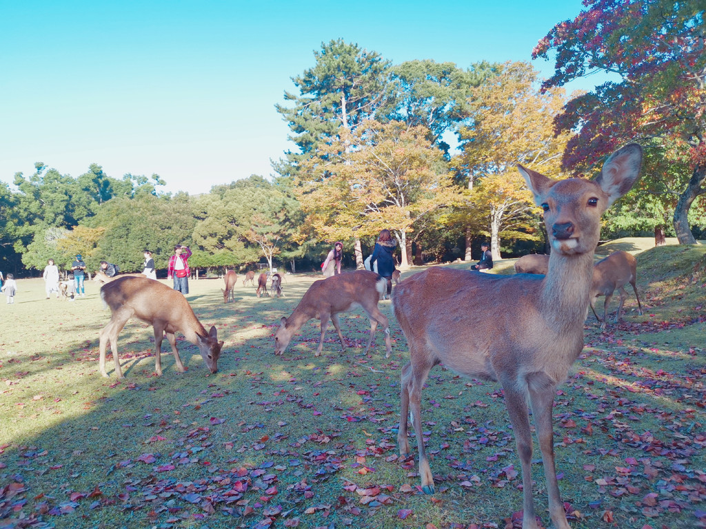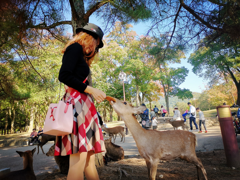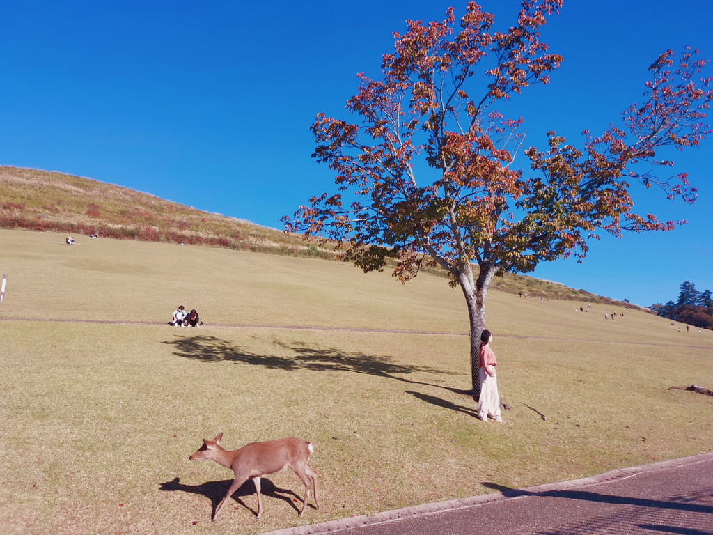 从客服中心出来,沿着池的东侧向北走,按着地图收藏的景点标记,依次兴福寺-奈良国立博物馆-奈良公园-东大寺二月堂-若草山-春日大社,一路上都是小鹿,所以不必挤在入口的地方,拍那几只脏兮兮还不太爱理人的家伙。转了一圈下山回到客服中心那条路,再一直往南走,就是客服阿姨推荐的一些隐藏在民宅里的几个当地特色的民居展示,应该是为推广当地文化所做的一些公益活动。