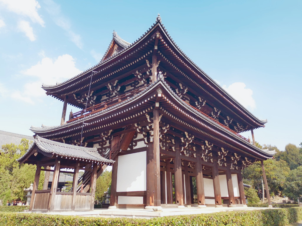 ★东福寺是离开伏见最先到的一个很不出名的景点,但真的很惊艳,木质的建筑,在蓝天白云下,显得很简单干净。