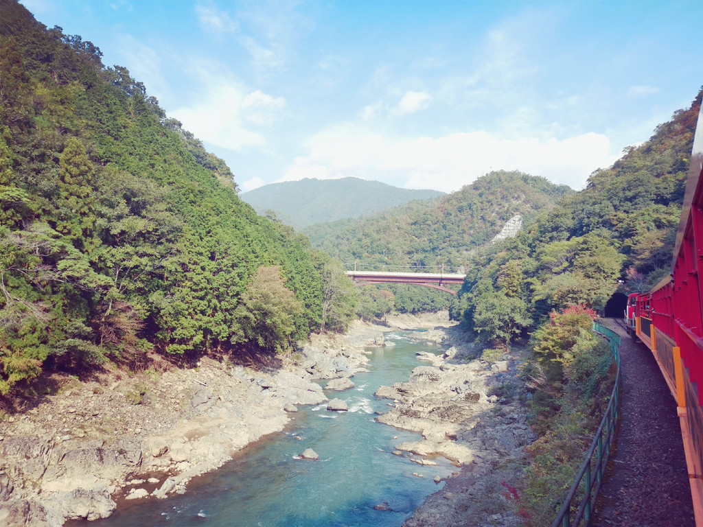 酒店附近有JR线,直接到嵯峨站,下来走到小火车的龟田站,无论坐在小火车哪边,总有一段能看见水,一段能看见山,没坐其实没关系,站在小火车的尾部,在小火车进入拐弯或山洞的时候,刚好在尾部能拍到整个车身。岚山站下来逛逛周边的寺、竹林后,坐jr回到京都站,刚好中午,继续逛了大半天伊势丹,晚上吃了一个炸牛排。