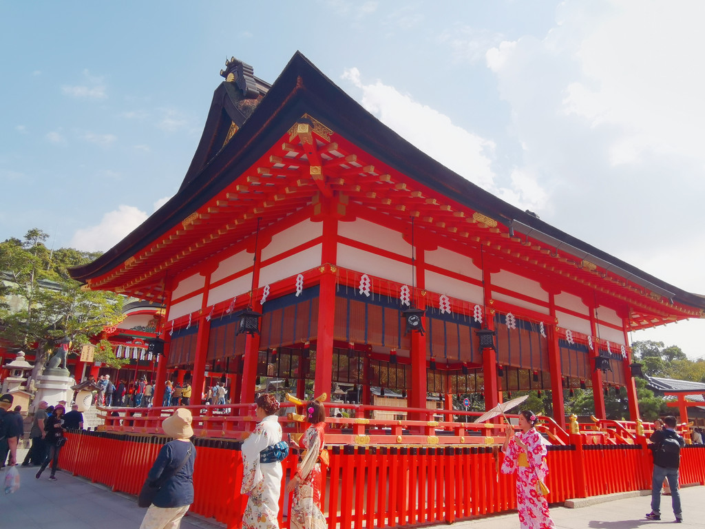 ★伏见稻荷大社,人超级多,根本找不到无人下的镜头。所以建议改个时间,一大早去比较合适。我们原本计划从京都到宇治那天去,因为是同一趟车,会先经过伏见稻荷,但是想想那天还要去奈良,时间有点紧张,就没这么安排。但伏见稻荷大社放在一天的早上是最好的。