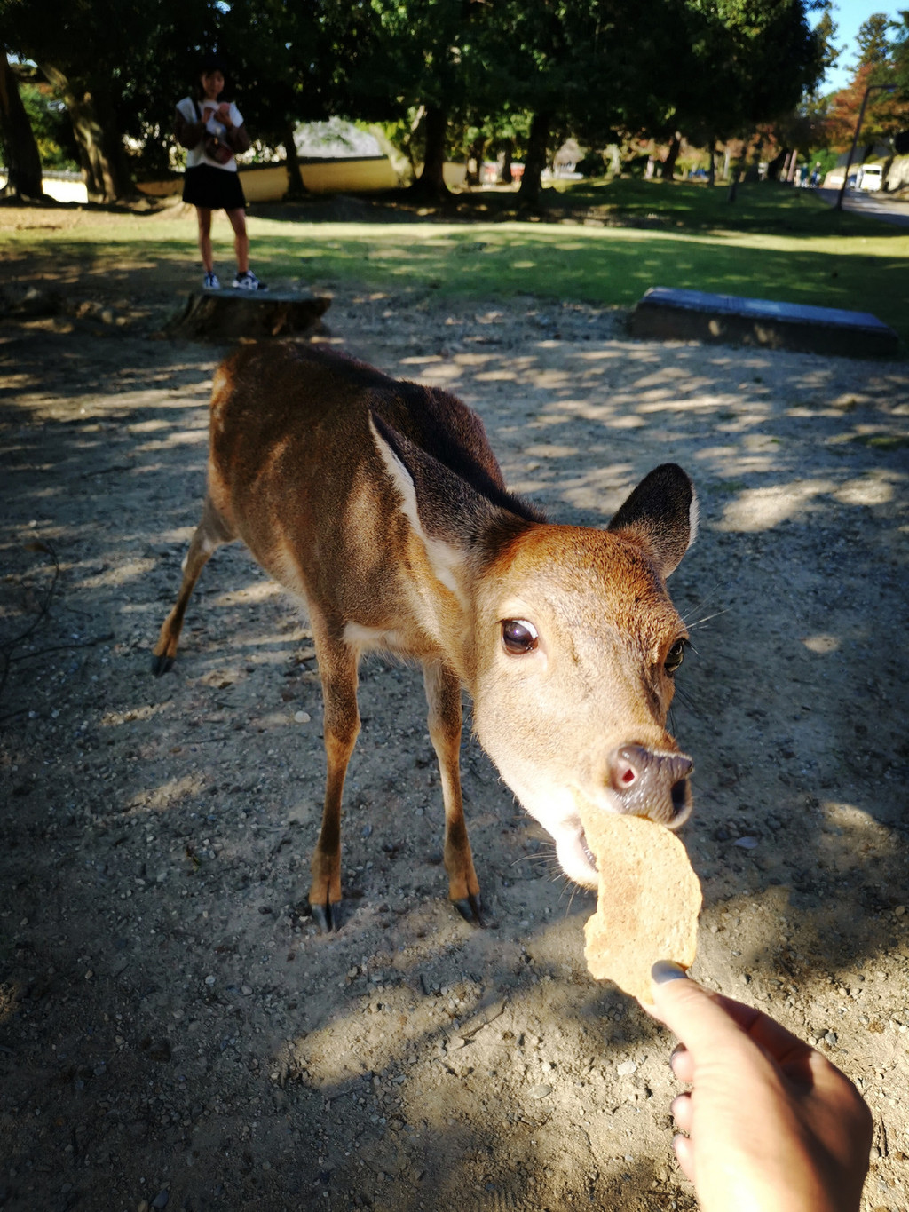 ★宇治饱餐后,在店里逛逛买了点手信就回JR宇治站向奈良小鹿奔去了。奈良站的行李寄存柜都被占满,出来有个客服中心可以寄存,朋友花了1400日元寄了,我想省点,本来想拖着箱子上公园的,后来发现有点困难,抱着试试看的态度,在兴福寺对面的猿伬池的东南角找到一个客服中心,这里是免费寄存的。客服还很nice的建议怎么个路线,并给了一些攻略上没有的当时在附近举办的一些小展览,建议我们逛完回来后,可以去逛逛。