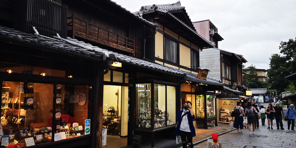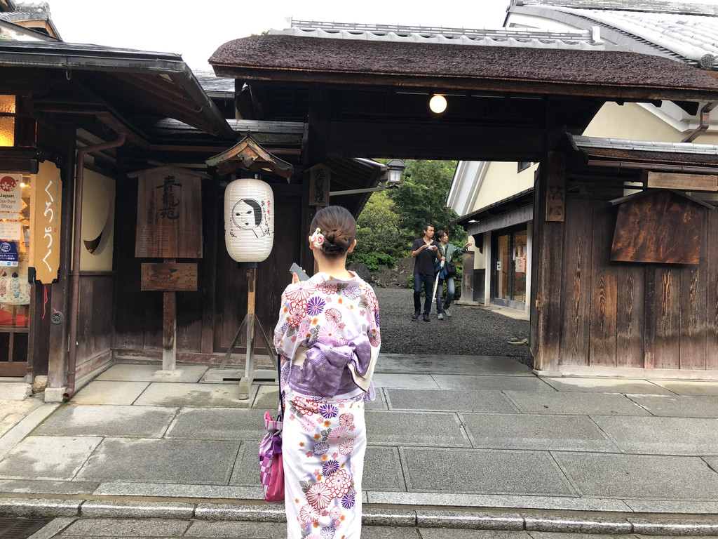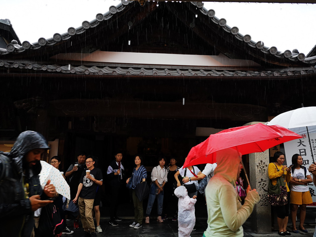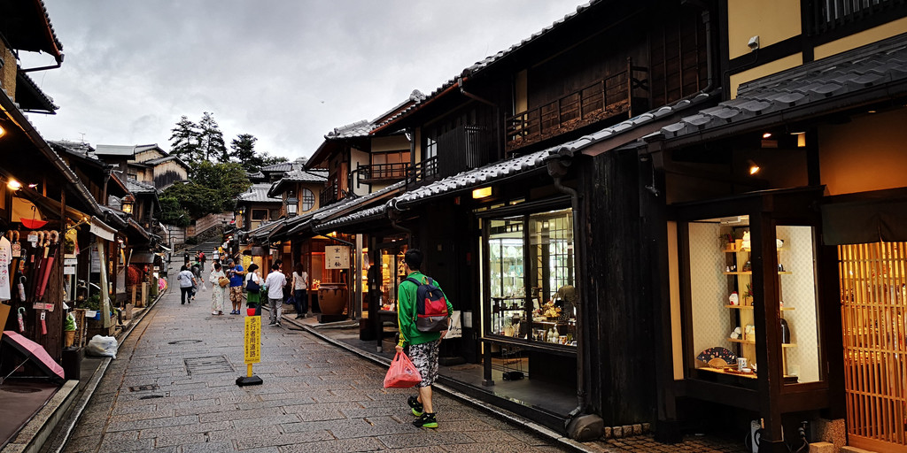 从清水寺中出来,开始下雨了。出行遇上了台风天,但只下了半来个小时的阵雨,很是幸运。一般我的出行运气总能好到天气预报都是台风、大暴雨,到了当地也能天晴,感谢老天爷。