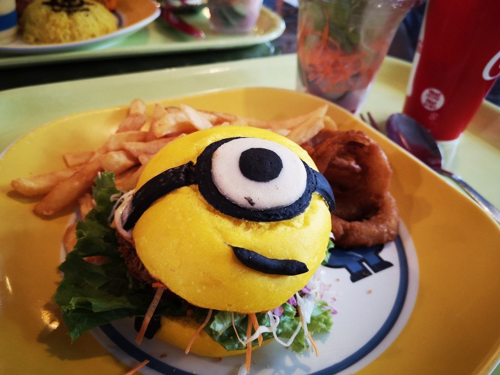 午餐去了小黄人乐园,点了超萌的小黄人套餐,很逼真。整个园区都是行走的小黄人,排队看了5D电影《卑鄙的我》,沉浸式体验很精彩,虽然都是日语听不明白,但跟着电影镜头也是一下被逗得咯咯直笑,一下被吓得惊声尖叫。