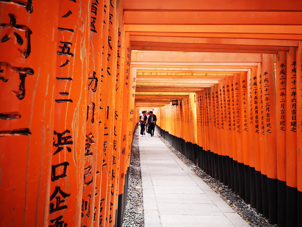 鸟居是日本神社建筑物,主要用以区分神域与人类所居住的世俗界,代表神域的入口。从山脚到山顶有几公里,赶时间的人不需走完全程,找个僻静无人的一段拍几张照片就好。跟小伙伴在路上逮人帮我们拍合影,结果碰到了一个爱好摄影的日本大叔,没见过更良心的拍照路人了,教我们摆姿势拍了很多照,弄得我们不好意思耽误他时间。后来还聊起他来中国好多回,很爱中国。给友好的日本友人点赞!