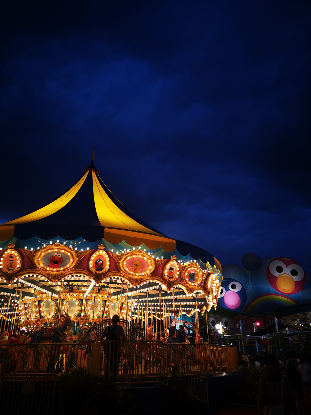 好莱坞美梦过山车是在晚上坐的,能看到整个园区的灯光,精彩又刺激。有正坐和倒坐两种,倒着的队伍老长老长,为了节省时间我们排队了正坐的。晚上的过山车因为看不见离地有多远,又有各种绚丽的灯光,虽然有失重感但不害怕很多,我们在过山车上放肆大叫的很开心。