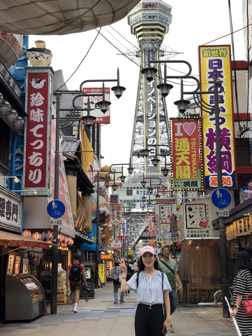 通天阁处于新世界地区,有着十分热闹且怀旧的市井风情,也是美食的天堂!章鱼烧、铁板鱿鱼、旋转寿司、河豚料理,配上自带笑点的日文歌,热闹非凡。