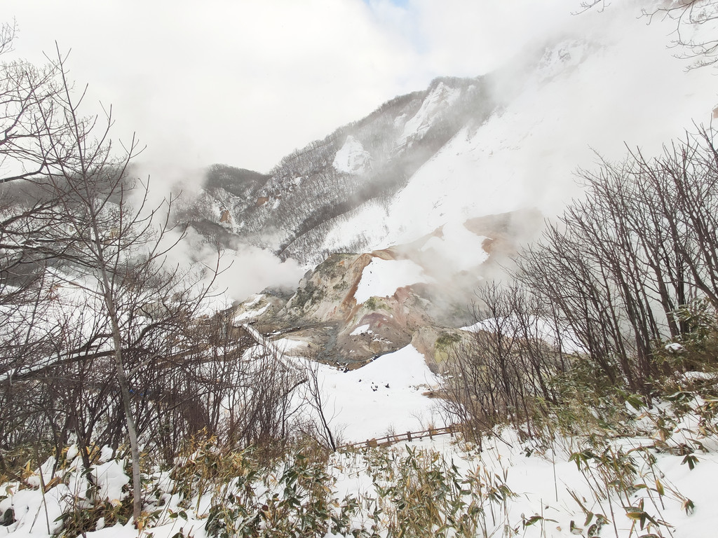 札幌想去登别据说有公共交通,因为很远,公共交通也不便宜,而且肯定不方便,并且会错过很多沿途超美的风景。我们是包车前往的,我们是一家五口,所以包了辆7座的商务车,全天10小时价格是2850,这是因为这次疫情日本旅游行业惨淡所以给报的价格低,过年期间价格基本 在4000左右,如果需要,我可以推荐我们司机微信,他是北海道毕业之后跟几个朋友自己在日本注册了一个公司接旅游包车跟拍什么的。早上9点司机到我们住的民宿来接我们,沿途因为雪天路滑,所以开得很慢,沿途先到洞爷湖,如果运气好雾散开了能看到对面的雪山,还是很美的。