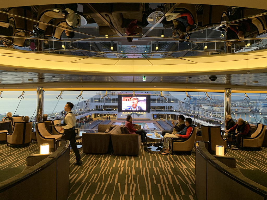 5层还有Infinity大堂酒吧和预订服务柜台,可以预订每一个停靠城市地面旅行服务,这部分是另外收费的,旅行途中讲解语言有英语、德语、法语和西班牙语。也可以预订未来的其他航线产品。