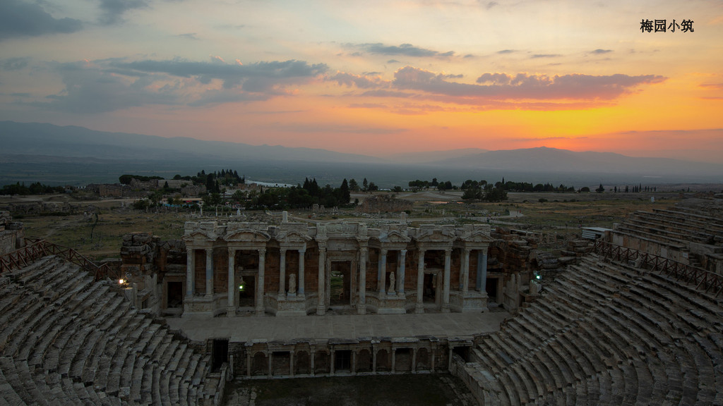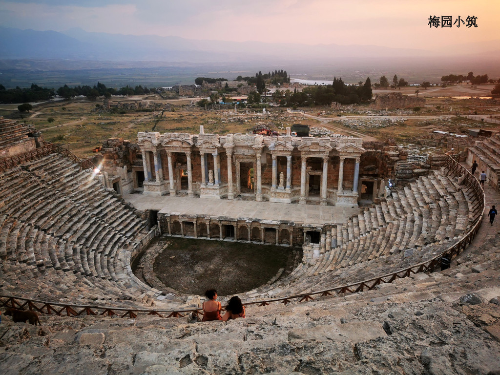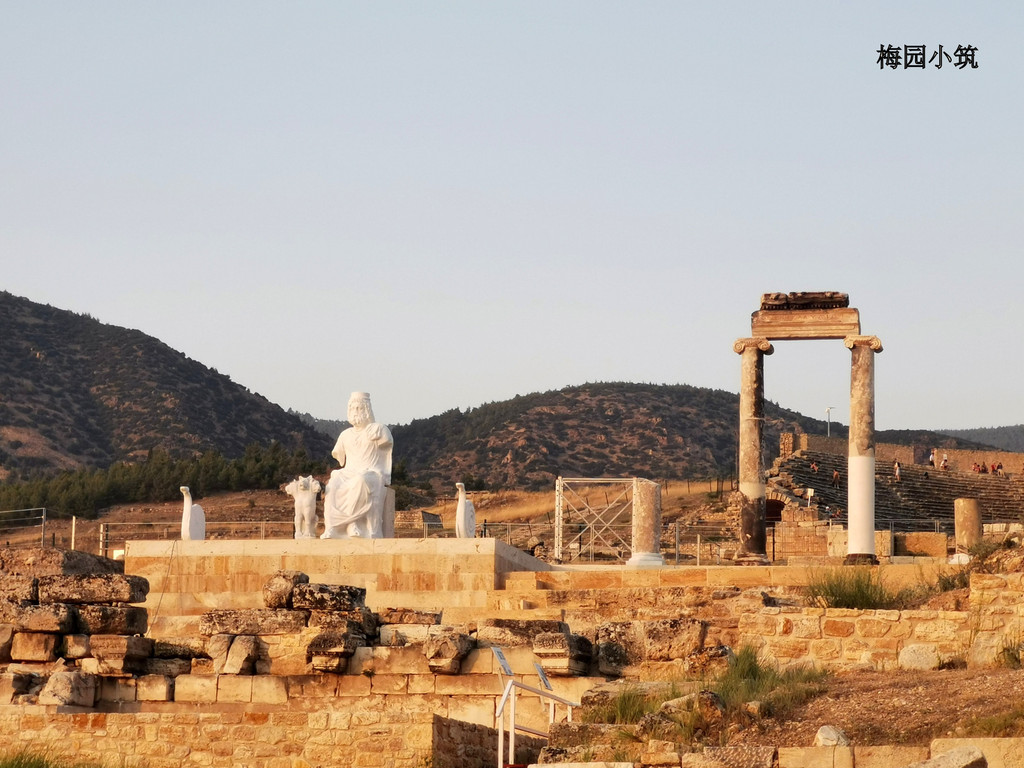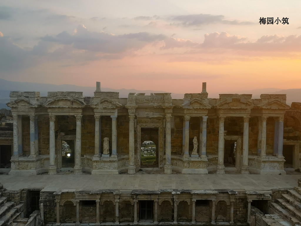 其实当时城市中最重要的建筑是献给希拉波利斯的保护神阿波罗·莱贝诺斯的神庙,现在访客们只能看到这座多利安式希腊式神庙残余的地基,神庙里还有献给阿波罗、库柏勒、阿尔忒弥斯、普鲁托和波塞冬的祭坛,想来,当年这神庙一定是蔚为壮观,每一处遗址都在诉说着那一段难忘的岁月,夕阳的昏黄光芒披泽万物,更显出岁月的荒凉之感。