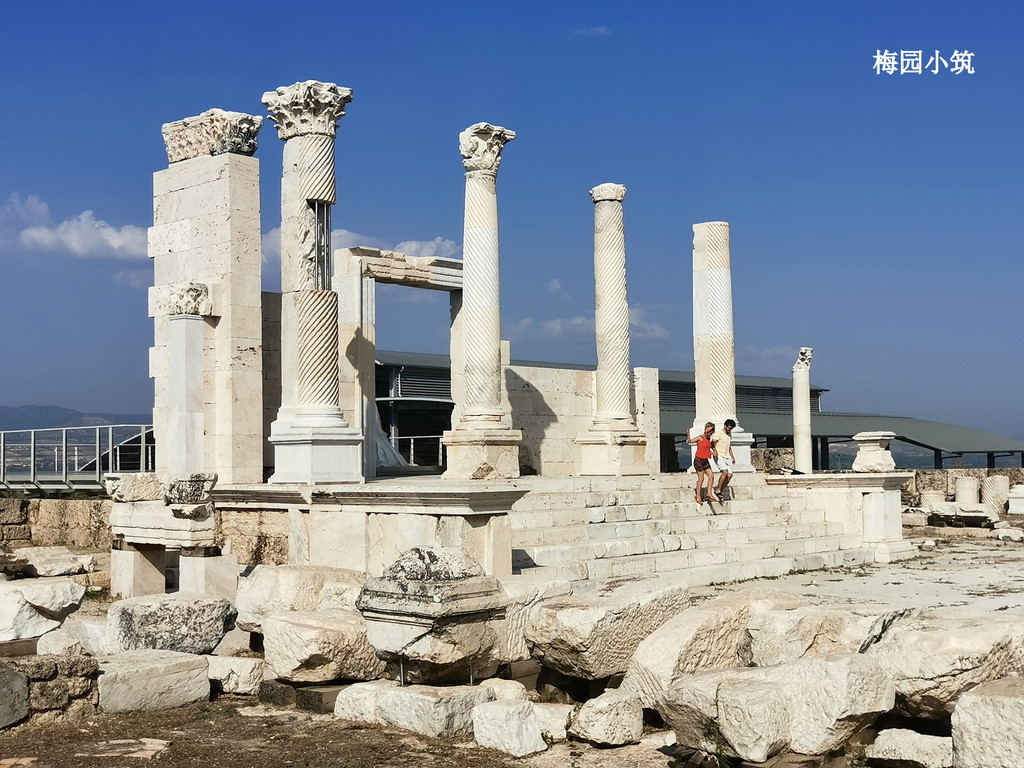 劳迪科亚古城最美的地方,我个人认为就是神庙遗迹。这座修建于古罗马时代的神庙,有着其它地方少见的壮观,法国作家雨果说过:“建筑是石头的史书。”建筑沉淀着历史,每当看到这些巨大的石柱,总能唤起我们对附着于建筑之上许多故事的好奇。神庙建在七层台阶之上,依然挺立的几十跟石柱恍然可见当年的辉煌,玉阶巨柱,庄肃凝重,雄伟浑厚,富有气派。这座神庙承载着两千多年的历史,即使已然坍塌,还可以看出神庙当年的雄姿。