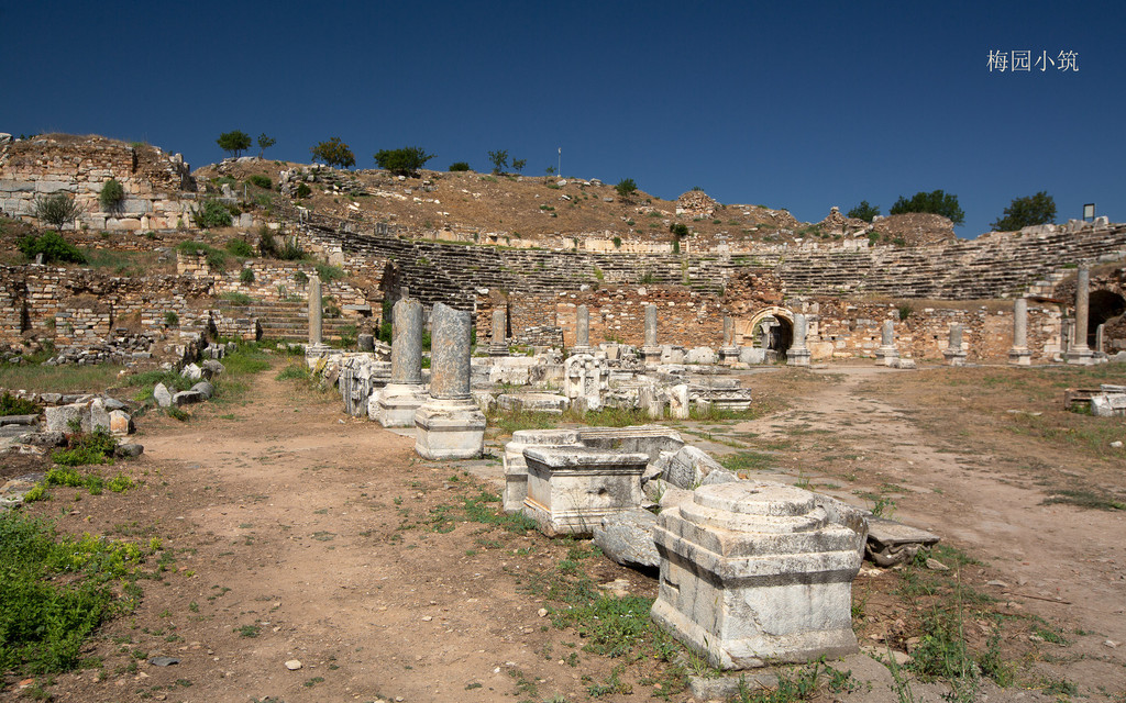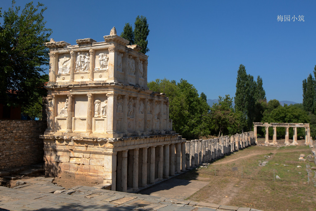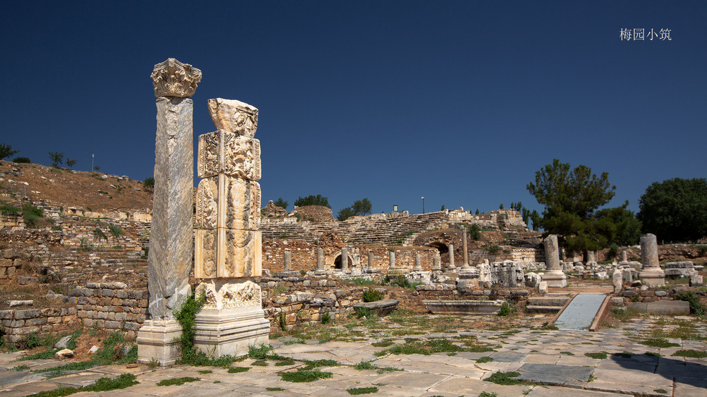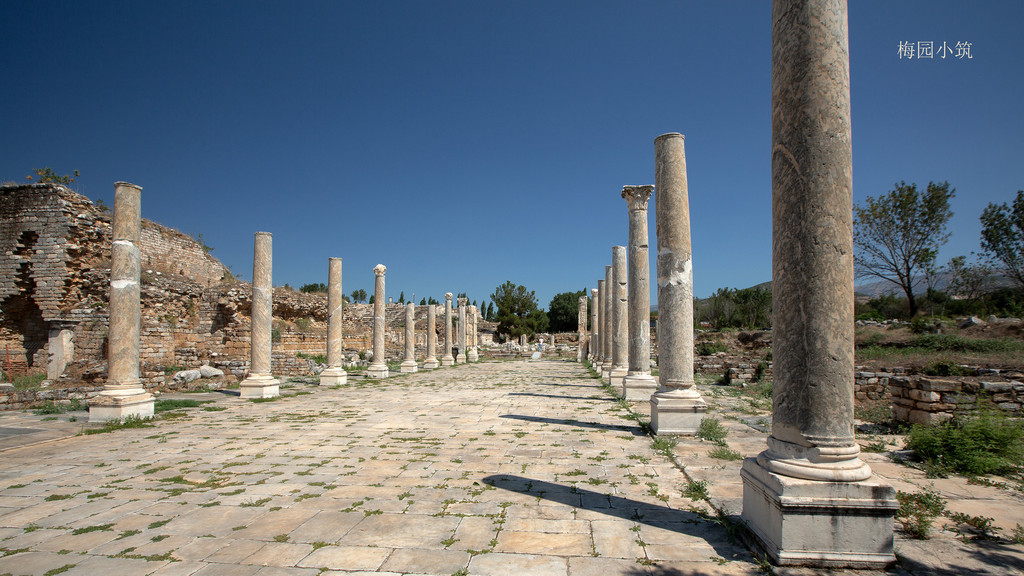 从棉花堡出发,经阿芙洛迪忒神庙、以弗所遗址到伊兹密尔约三百公里。这三百公里,几乎就是徜徉在古罗马的遗迹里。阿芙洛迪西亚斯古城修建于2500多年前,之所以举世闻名,是因为她的雕塑学校。至今残存着希腊风格的澡堂、拱门、横梁、石柱长廊、指向天空的大理石柱,它们全部由雪白的大理石雕筑而成,花纹繁复,雕刻精致,造型宏伟。而空地上孤独伫立的月女神殿,永远在月光下闪烁清冷的光辉,陪伴岁月冬来春去。