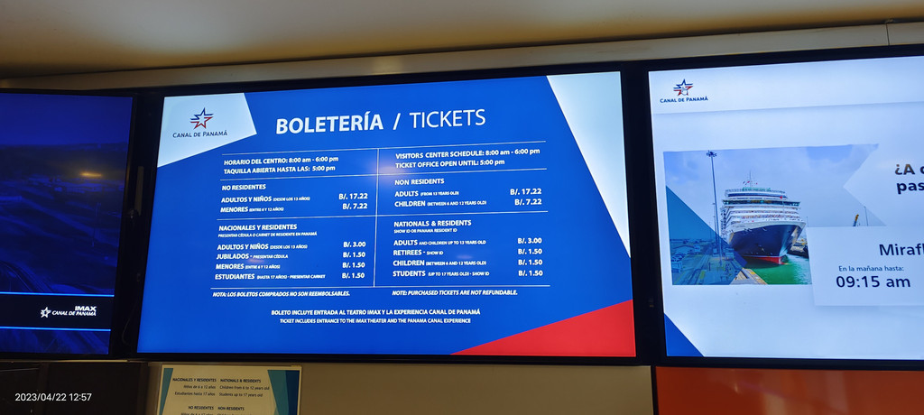 这个17美刀的价格包括了一场IMAX电影,介绍运河的历史。售票处现场有几张大幅电影海报,配有美国黑人影星摩根·弗里曼的照片。同伴很喜欢摩根,以为摩根会出演里面的哪个角色,很是开心。后来看片时才知道只是由摩根解说。摩根当然是用英语解说,字幕是西语。