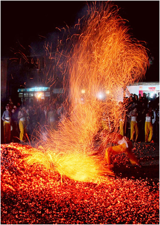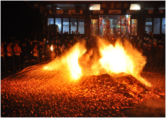 祛瘟去邪,避祸消灾,成为法事仪式而相沿成习。近年来,当地民众尝试在传统基础上增加了钻火箍、在火堆中滚叉、武术等表演与阵图,使整个活动更具地方特色和古老的艺术氛围。