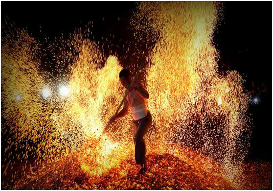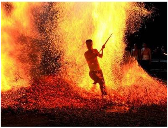 炼火的过程充满远古时代先民对火的崇拜痕迹。