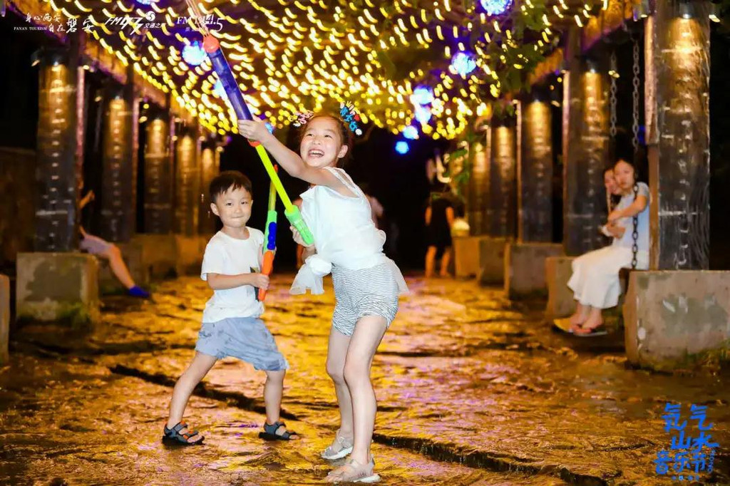 音乐节特别推出花式夏日酷爽玩法,现场设立劲浪互娱区,激情上演水枪大战,“音乐+玩水”,让人畅快淋漓。随着夜幕降临,暑气渐消,在山谷里仰望星空,聆听天籁之音,感受“身心两安、自在磐安”的舒心。