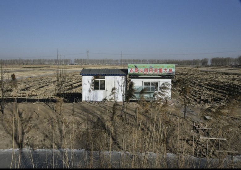 城市近郊的农田,都是刚刚被收割的稻田,稻田地头大多矗立着河蟹养殖和售卖的牌子,还有一个个农忙时临时居住的小屋。