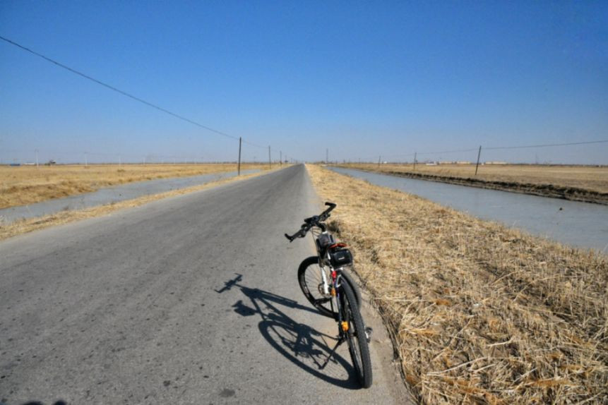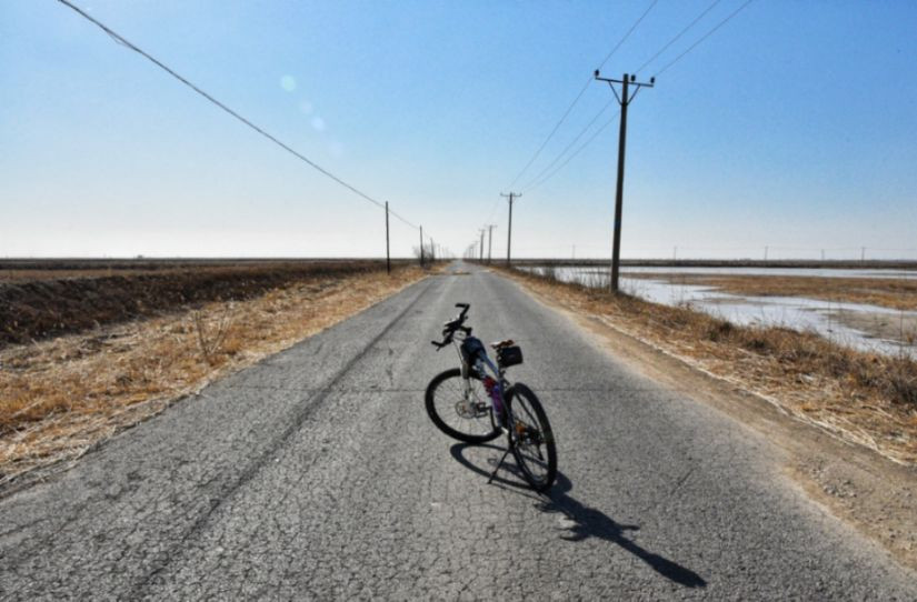 继续顶风骑行,一边数着剩余的公里数,一边寻找着可以左转南下从而直达河口的路口。
