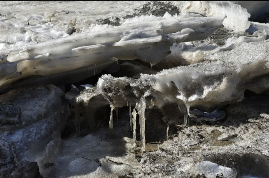本来除了风声,一切都很安静的。突然,某处海冰断裂沉了下去,海水吞噬海冰的时候,发出轰轰隆隆的沉闷响声,似乎坠入深渊一样,叫人不由得心生恐惧。