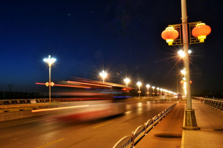 于是,我在寒风中手持单反拍下长曝光的车轨,画面的效果竟然还不错。