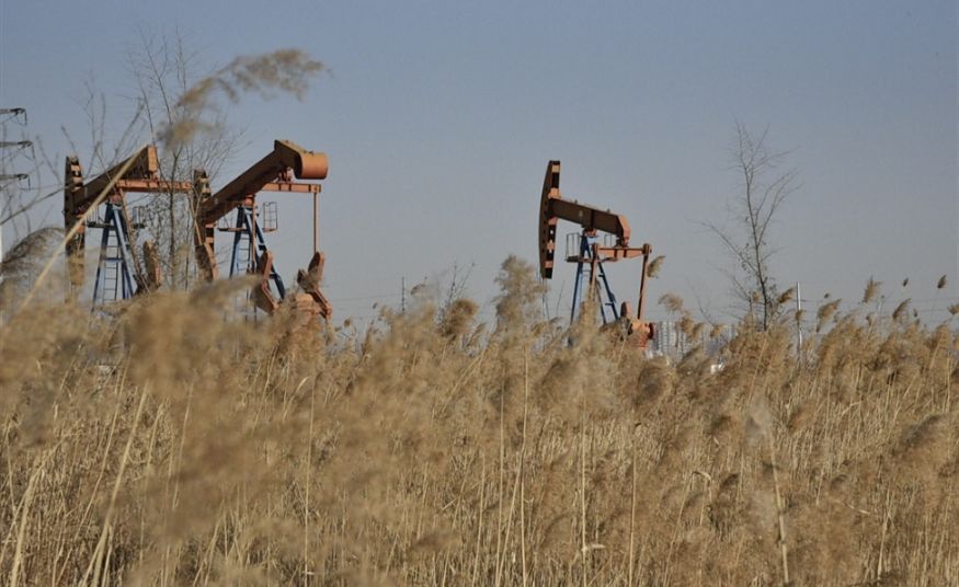 光秃秃的大地上,偶尔有几台磕头机,便是这幅场景中最动态的画面了。