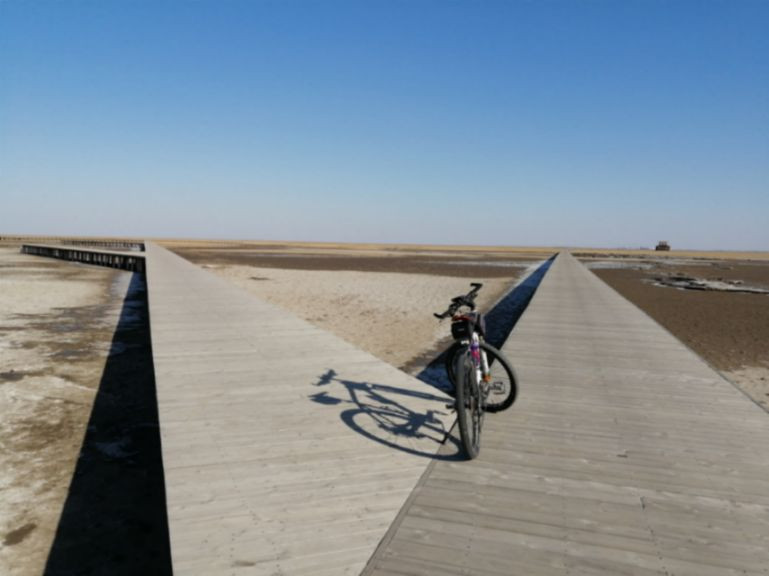 进入保护区的时候,风力突然变大了,莫名刮起的西北风,在空荡荡的湿地保护区肆虐,我刚好一路向西骑行,时速也逐渐下降到15公里。