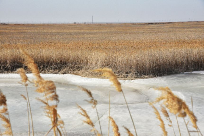 一马平川的苇塘里,只有打油的磕头机不懂停歇地忙碌着,孜孜不倦;只有打草的收割机收拾着苇塘所剩不多的芦苇荡,尽职尽责;只有电线杆纹丝不动地矗立在苇塘深处,一动不动;只有西北风,依然肆虐着。