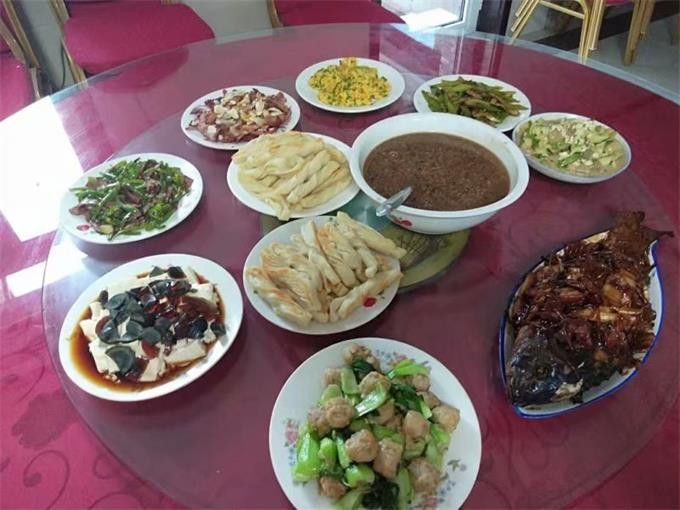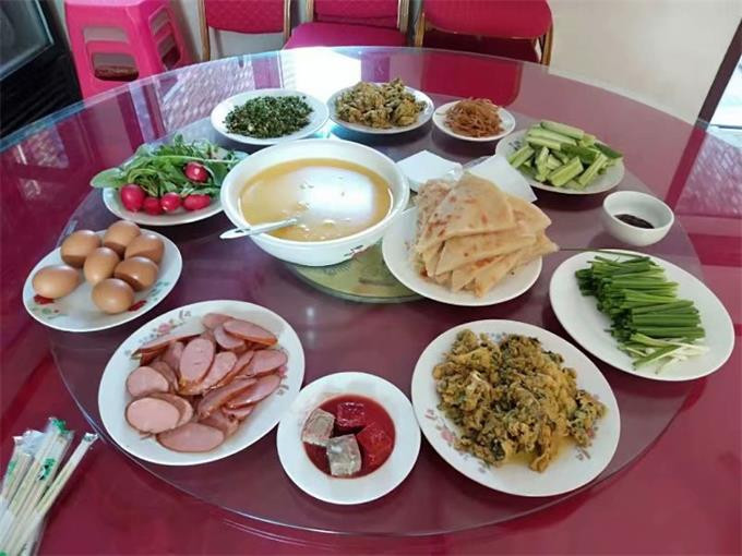 特色菜:盘山乱炖、柴鸡炖蘑菇、各种山野菜;主食:玉米勃勃、粘卷子、贴饼子、菜团子、野菜饺子; 烧烤类:烤全羊、羊腿、各种鱼类、各种烤串。